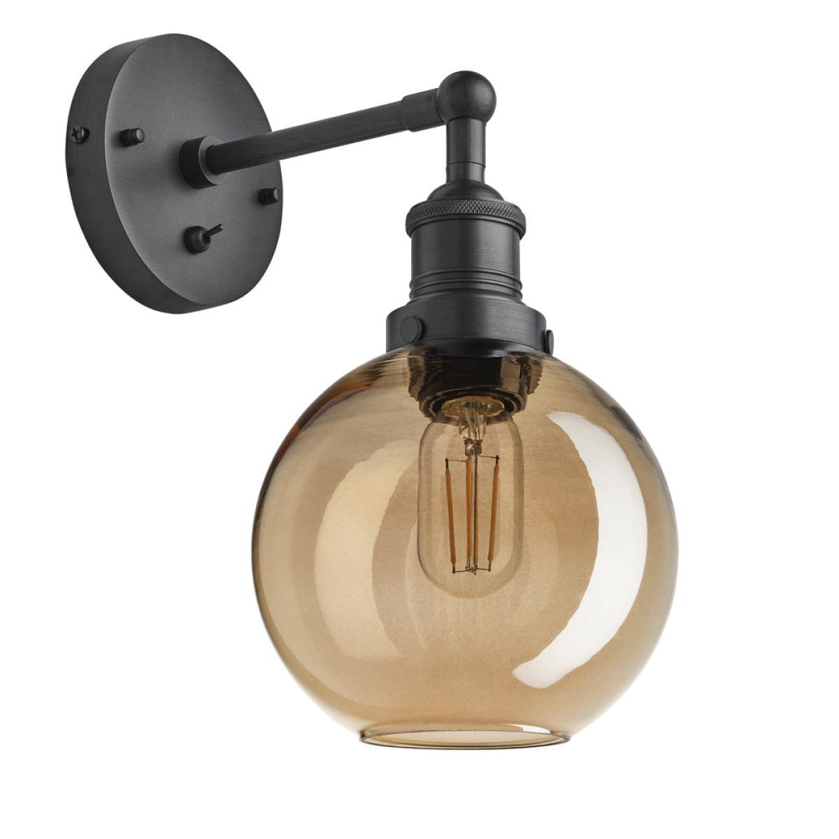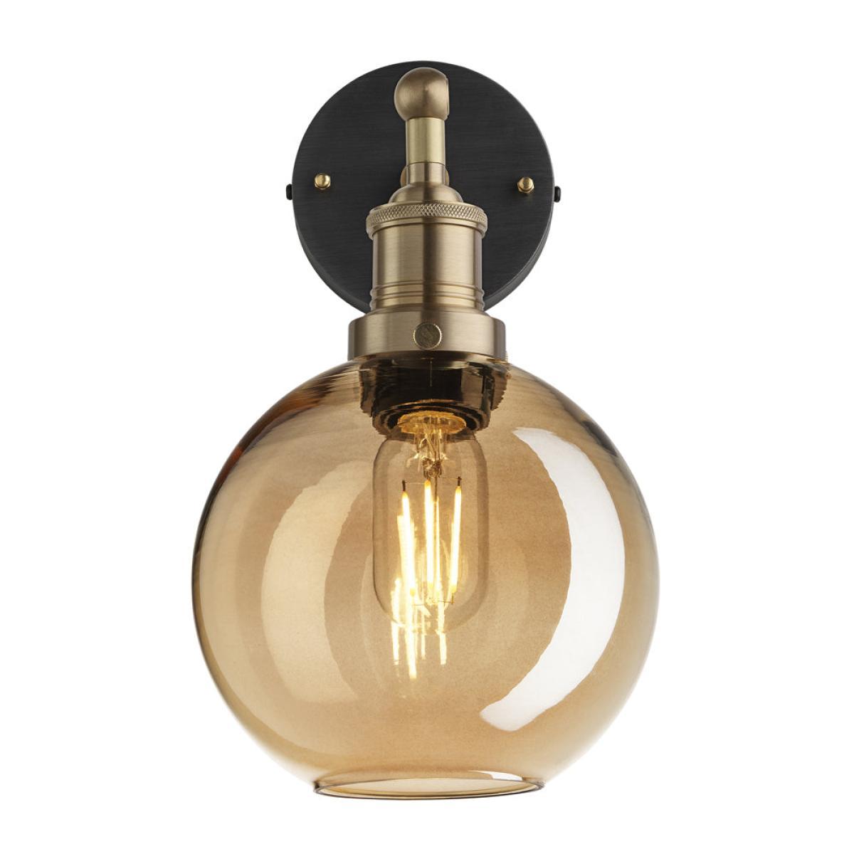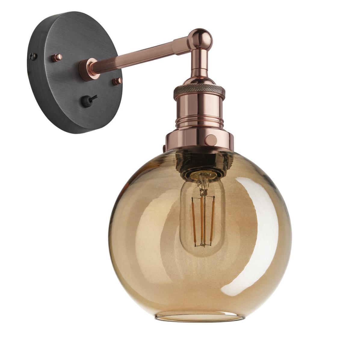 Industville Brooklyn Tinted Glass Globe Amber Wall Light / 7 Inch Pewter Holder