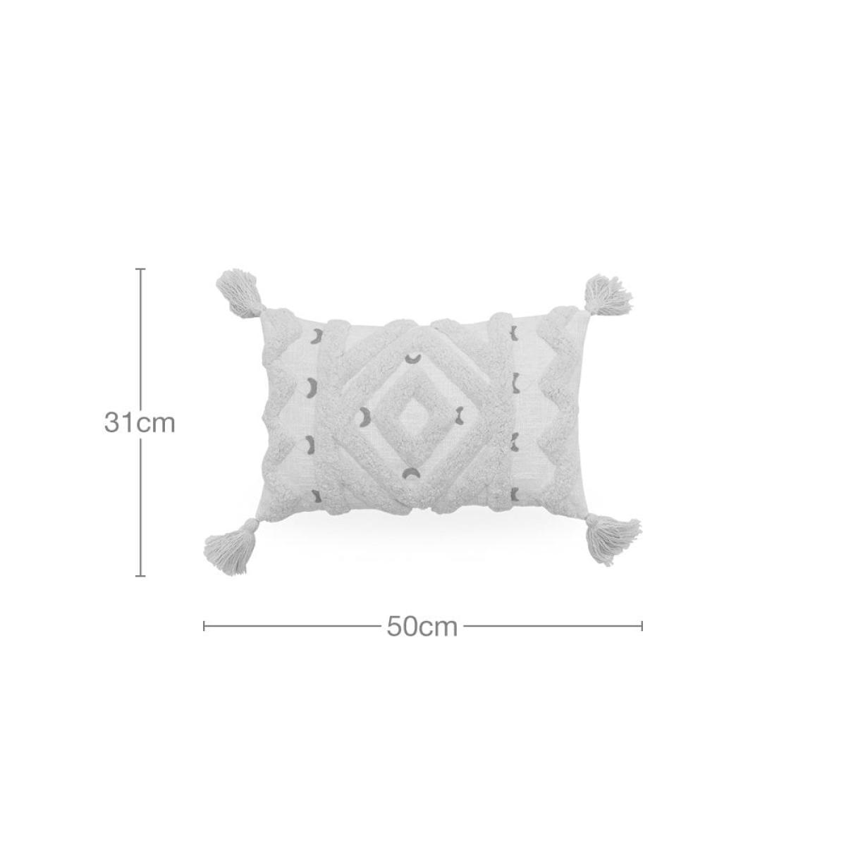 Crafted from 100% cotton, the Ines will add a soft touch to your bedroom or living room interior. Featuring a beautiful tufted Aztec-style pattern in cream, complemented with intricate embroidery and four tassels on each corner. This cushion will add some much-needed comfort to your be, armchair and sofa.