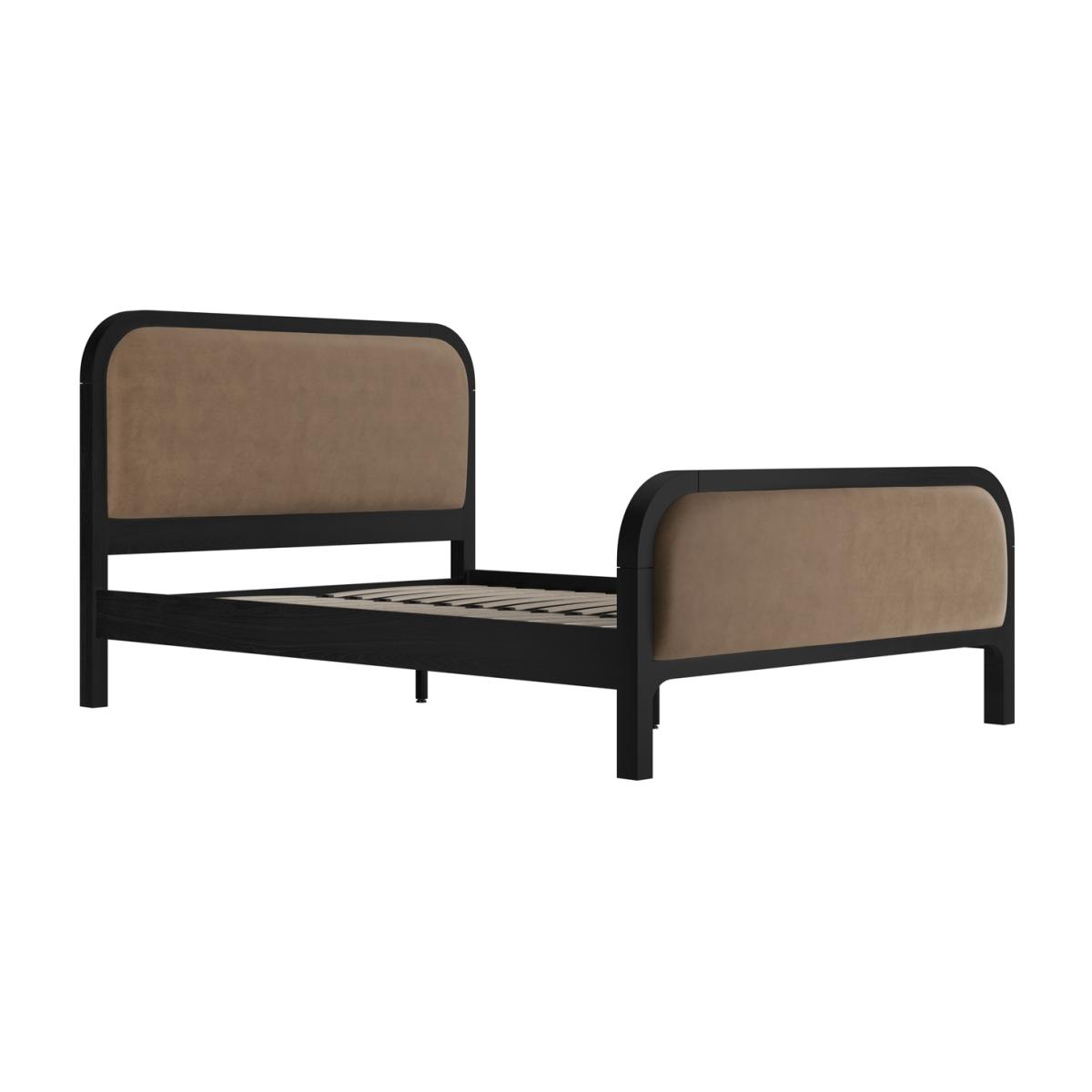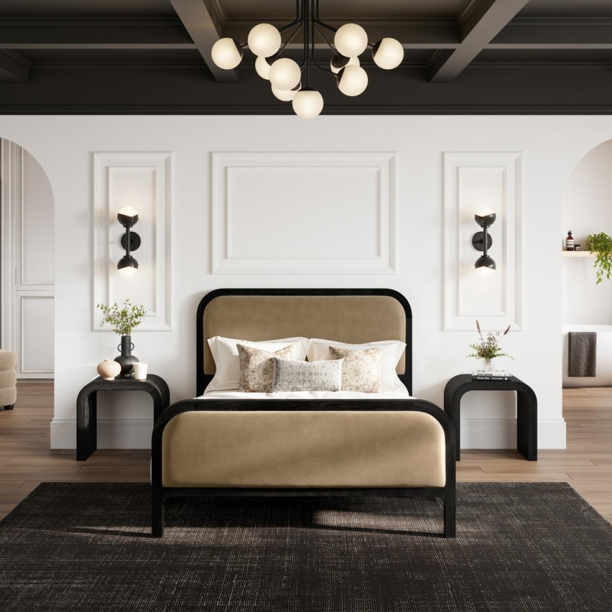The Ines king size bed features a stylish black bed frame and luxurious soft Mole velvet fabric upholstery. The modern, curved design of this bed is complemented by a comfortable padded headboard and footboard, while sprung wooden slats provide excellent support for a restful sleep. Elevate your bedroom with this chic and cosy centrepiece.