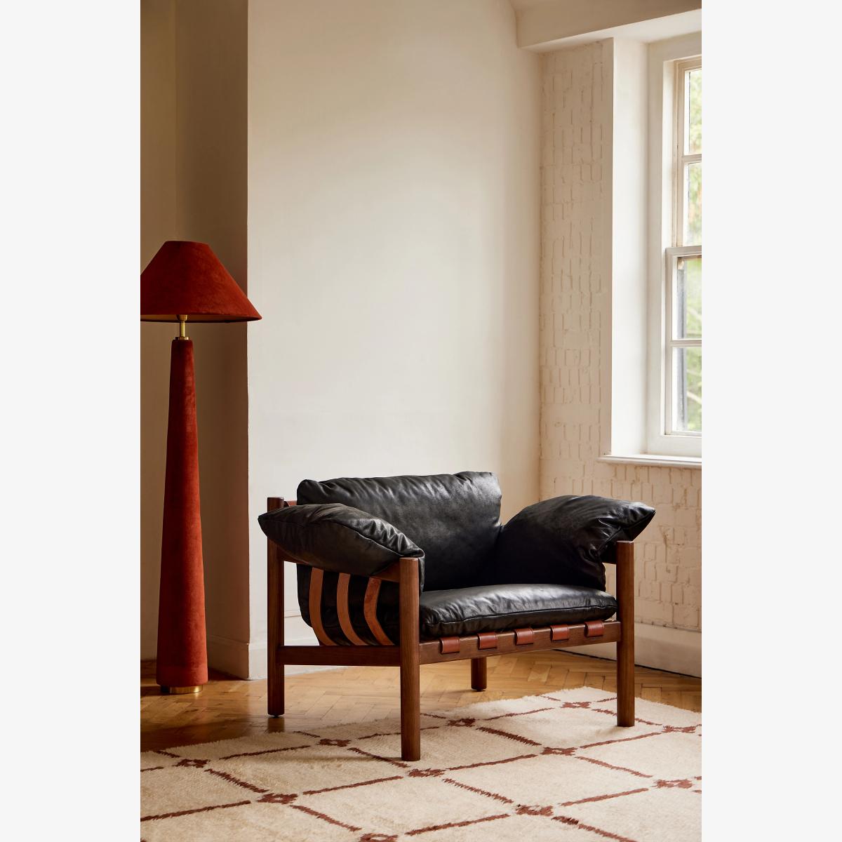 Leather upholstery and a woven base make this accent chair a functional statement piece for your home. * 100% Leather upholstery * Cushion content: foam & fibre * One removable seat cushion * Sinuous spring seat construction * Kiln-dried hardwood frame * Turned legs * Professionally clean * This item is intended for indoor use * No assembly required * Imported