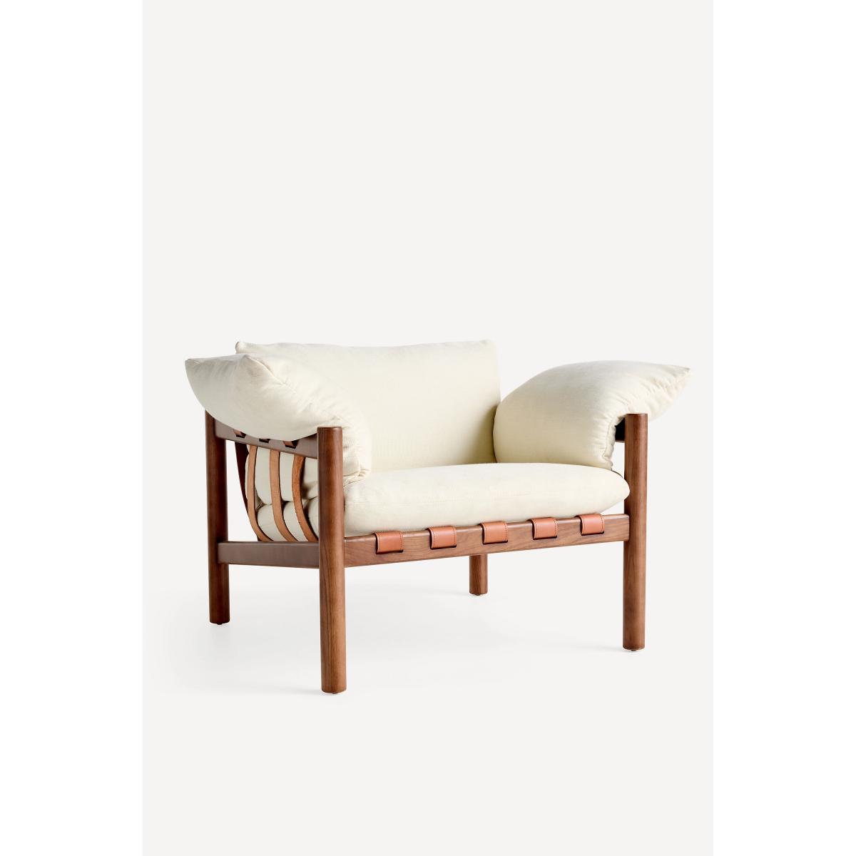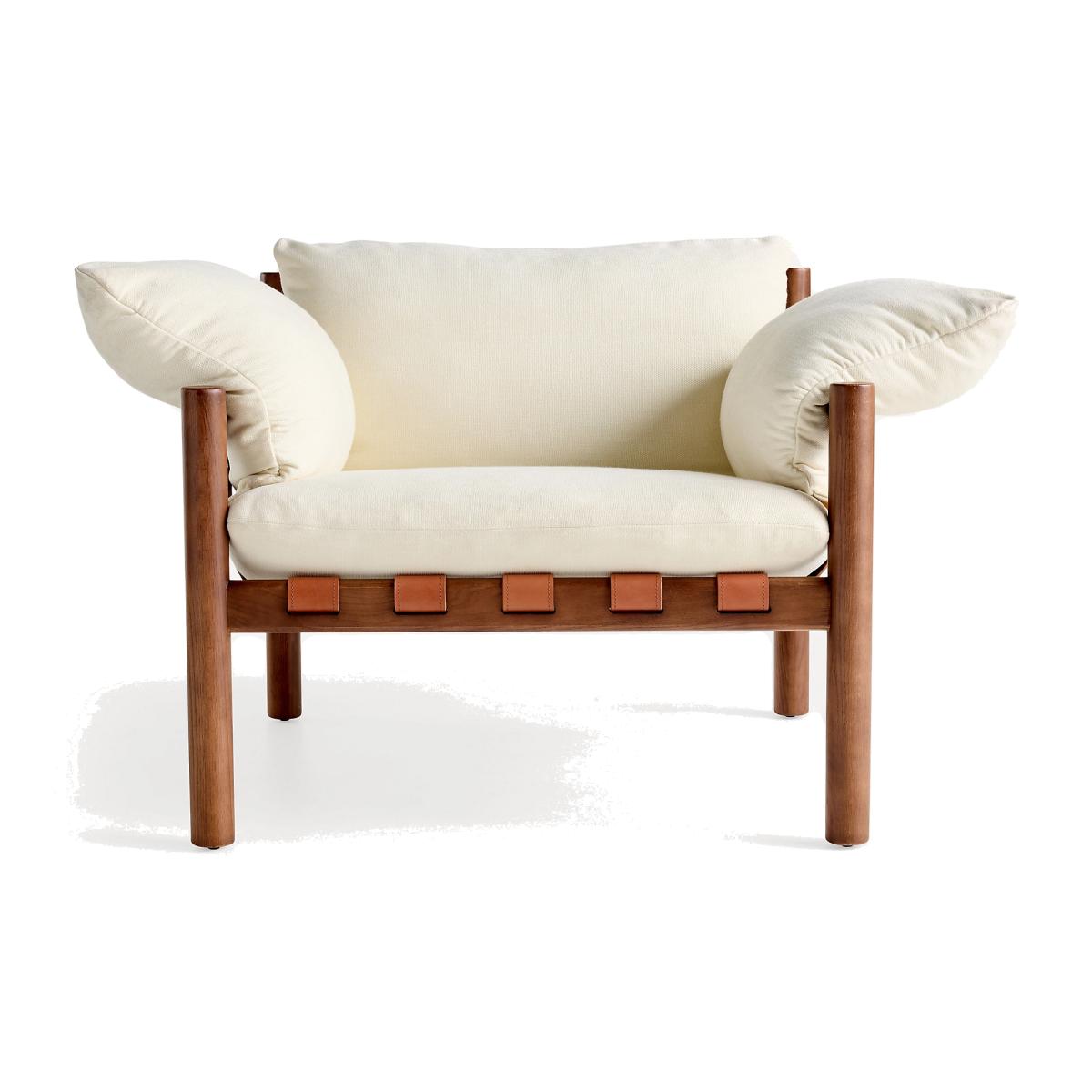Plush upholstery and a woven base make this accent chair a functional statement piece for your home. * 80% Polyester, 20% Viscose * Cushion content: foam & fiber * One removable seat cushion * Sinuous spring seat construction * Kiln-dried hardwood frame * Turned legs * Professionally clean * This item is intended for indoor use * No assembly required * Imported