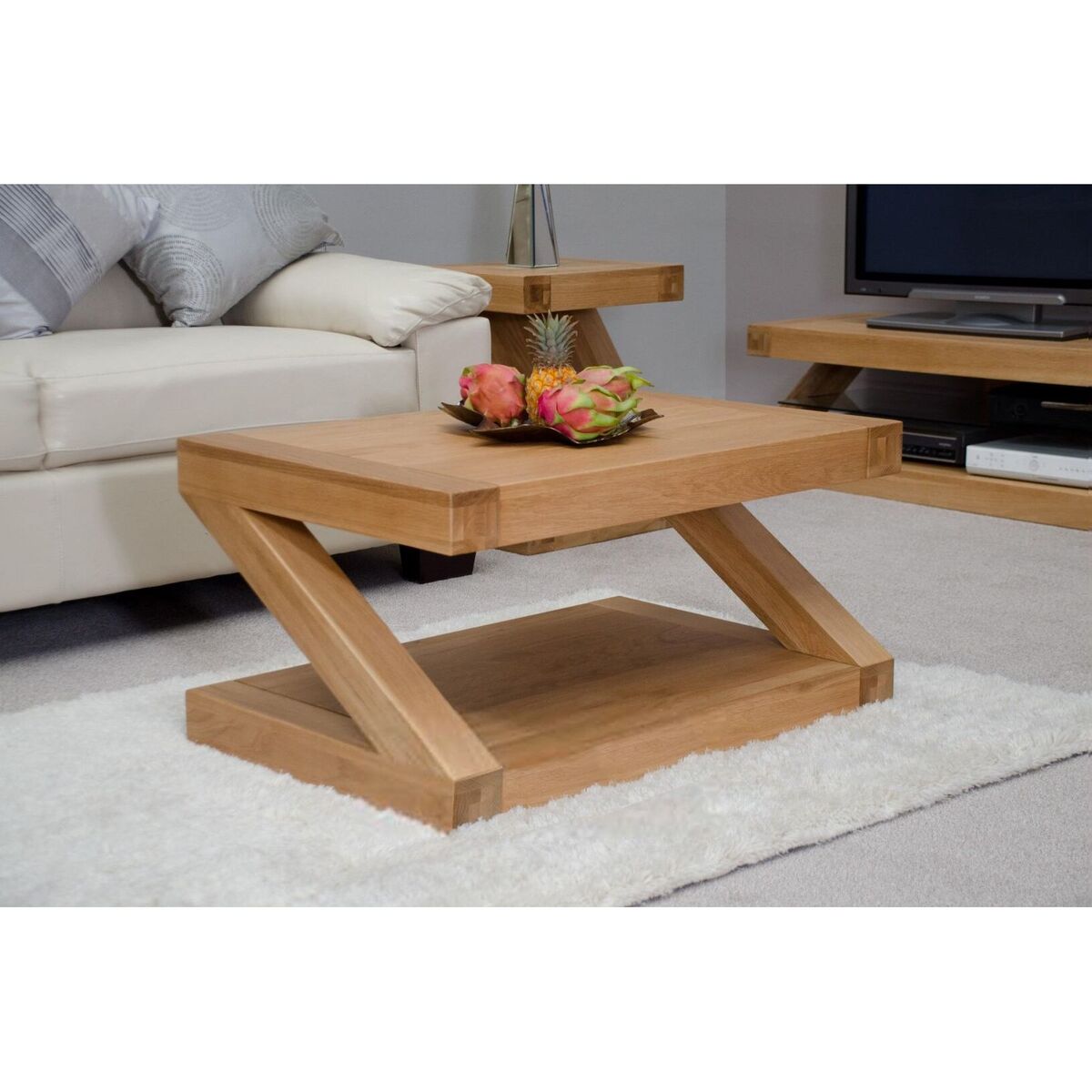 Let your living room come to life with the help of the Infinity 90cm Solid Oak Coffee Table, a wonderful presence in the solid oak Infinity range. The inventive styling of the coffee table leaves a lasting impression, but one that has the strength to support its daring design. Fashioned from 100% solid oak the 90cm coffee table is complete with a clear resistant lacquer that protects and highlights the grain of the oak. Practical and hardwearing, the coffee table features a convenient lower shelf allowing you to tidy your magazines and everyday items. Further Items in the Collection: Infinity 120cm Solid Oak Dining Table, Infinity 180cm Solid Oak Dining Table, Infinity 100cm Solid Oak Console Table, Infinity Solid Oak Lamp Table, Infinity 165cm Solid Oak Bookcase, and Infinity Solid Oak 90cm TV Unit