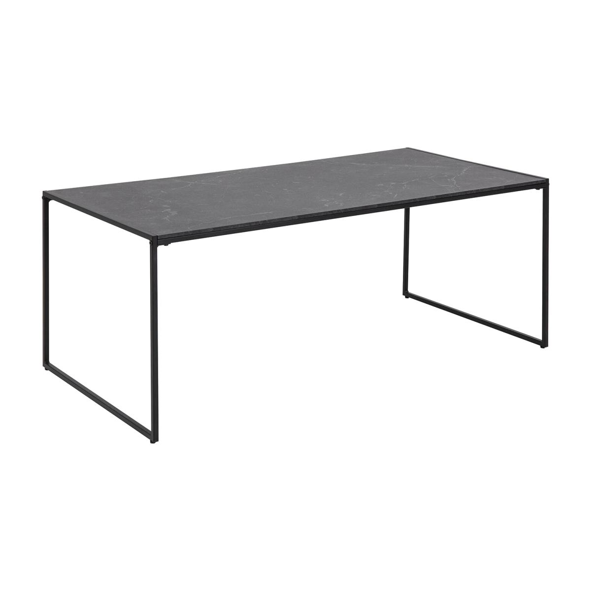 Upgrade your living space with this sleek Infinity Coffee Table, featuring a sophisticated matt black melamine top. The robust sledge base in rough powder-coated steel offers a modern and durable centrepiece. Ideal for any living room, it is perfect for holding vases, decorative pieces, drinks and other similar items. Easy to maintain, it is crafted with carefully selected materials to ensure minimal upkeep. Elevate your rooms with this modern and minimalistic coffee table.