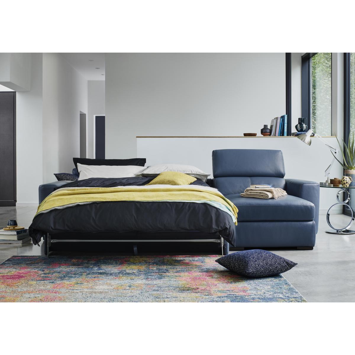 Discover modern, sleek and space-saving designs with the Infinity collection. Indulge in the comfort of pocket sprung seats and supportive manual headrests that are both wonderfully cushioned and decidedly contemporary. With smooth, clean lines and modern boxy arms, this stylish collection looks as good as it feels. Plus, these stylish designs meet the demands of modern life, with armchair sofa beds and chaise sofas with storage offering space-saving solutions for the contemporary home – particularly those short on space. Available in a wonderful selection of fabric and leather grades and beautiful colours to suit every décor. Part of a modular collection, you can mix and match different pieces from this versatile range to create your very own bespoke seating group. Exclusive to Furniture Village. Get three pieces of furniture in one with the Infinity leather corner chaise sofa bed with storage. Its clever design boasts a roomy sofa, a comfortable bed and a spacious storage compartment all in one. Why you'll love it Stylish and comfy leather corner chaise sofa bed with storage. Pocket sprung seats for comfortable seating Multifunctional design upholstered in a high-quality 100% leather. Clean lines and boxy arms that complement modern interiors. Comes in a variety of colours in different leather grades with various levels of softness and durability. Manual headrests to lean back in total comfort. Spacious storage compartment. Also available in a choice of super-soft fabrics to suit any interior and lifestyle. This modern leather corner chaise sofa bed with storage is part of the Infinity range. Made exclusively for Furniture Village. What you need to know Part of a modular range, you can mix and match with different pieces for a bespoke sofa. Leather has unique marks and characteristics with variance in colour and texture, and softens with use. Smoothing the cushioned top prevents ‘puddling’.