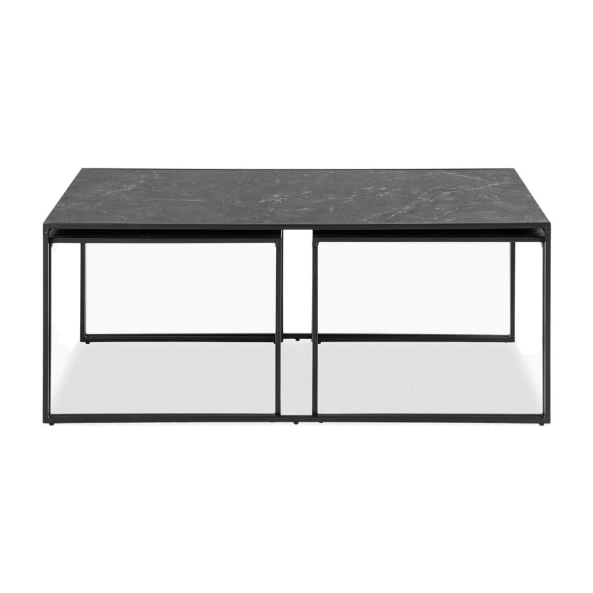 The Infinity Set of 3 Nesting Coffee Tables brings modern simplicity to your home. The design includes one coffee table and two side tables, accented by a powder-coated black metal frame and black marble effect surfaces. With the two side tables slotting neatly underneath the larger coffee table, this Coffee Table Set is perfect for utilising compact living spaces and for those who love a minimalist feel. Its subtle industrial style is sure to enhance any living room.