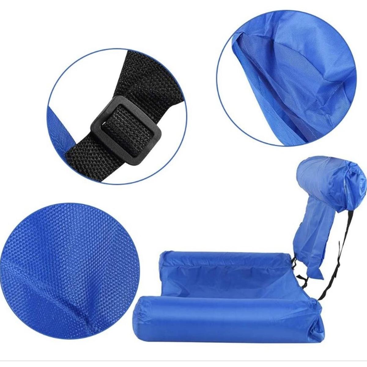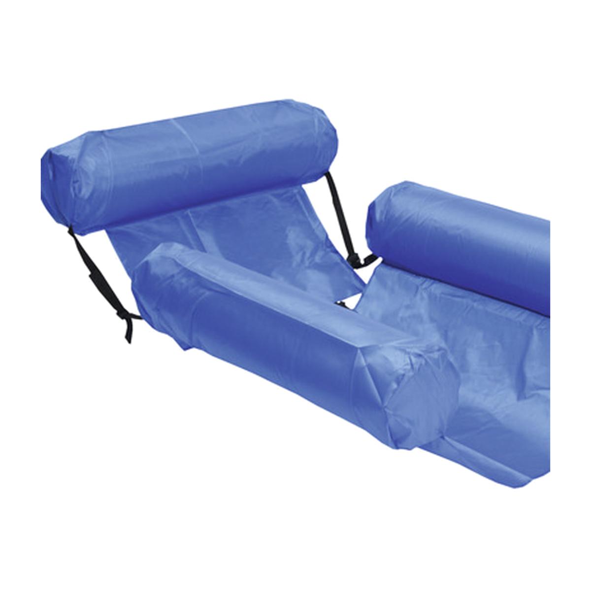 120 x 100cm Inflatable Floating Water Chair / Lounger ideal for the pool or beach. This floating chair is made of high-quality PVC which is very durable and with 2 inflatable armrests for better relaxation of the arms and headrests for better neck support. The ergonomic design provides sufficient support and comfort, with foam board for the backrest, providing buoyancy. Adjust your position with the two belt inserts, and it will comfortably suspend you in the water and contour to your desired floating position. The water chair/hammock is easily inflated and when not is use, simply roll to store or transport which is ideal when travelling.