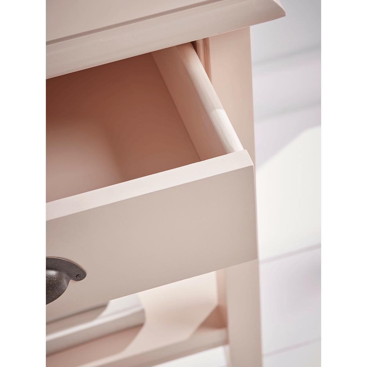 An instant modern classic, our Inga Bedside Table, with its understated, yet sleek painted finish and handsome burnished metal cup pull hardware, is simple and sophisticated in design and practical in use. With plenty of space on top for a bedside lamp, a generous storage drawer and lower shelf ideal for stowing away bedtime reading, this piece will slot easily into a calm, pared back bedroom scheme.