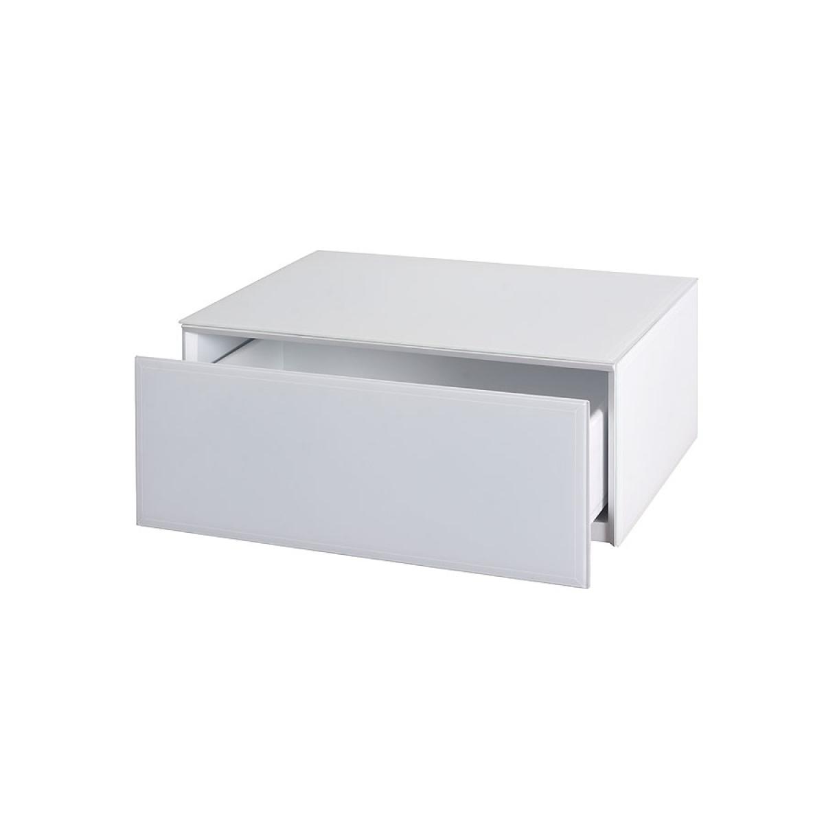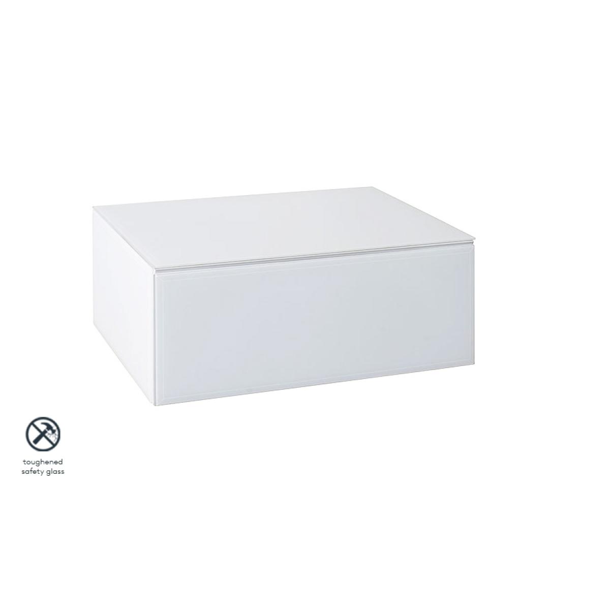 Inga is a versatile product that may be used as a bedside table or shelf. Made from toughened bevelled white mirror with an internal drawer for storage and concealed handle to the underside. Simply and securely fixes to your wall via four screw holes to the rear. Can be combined in multiples to create striking and practical configurations.