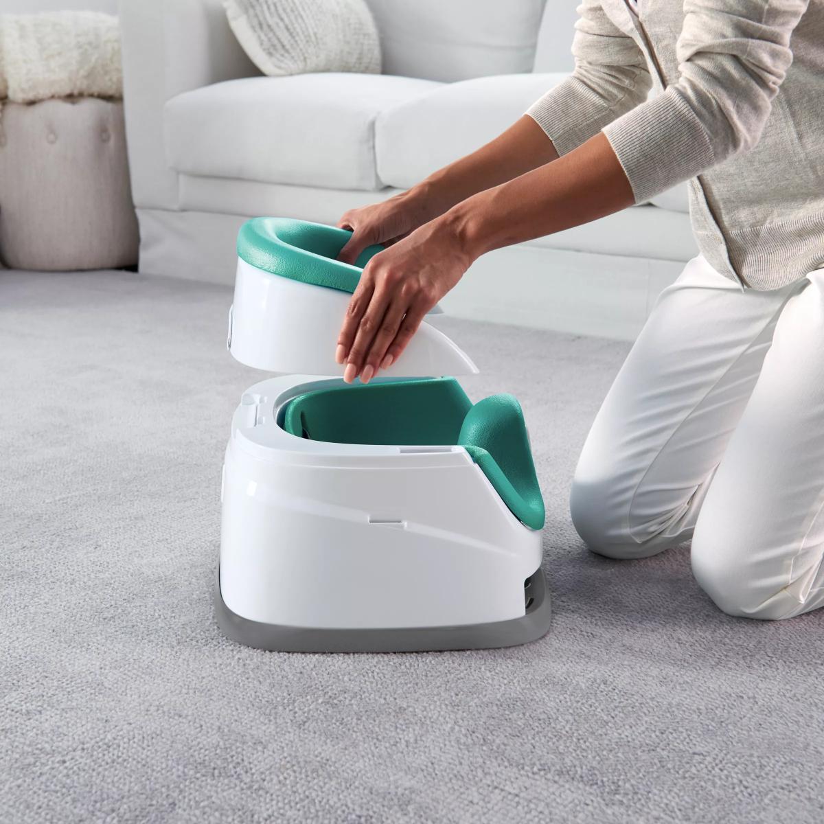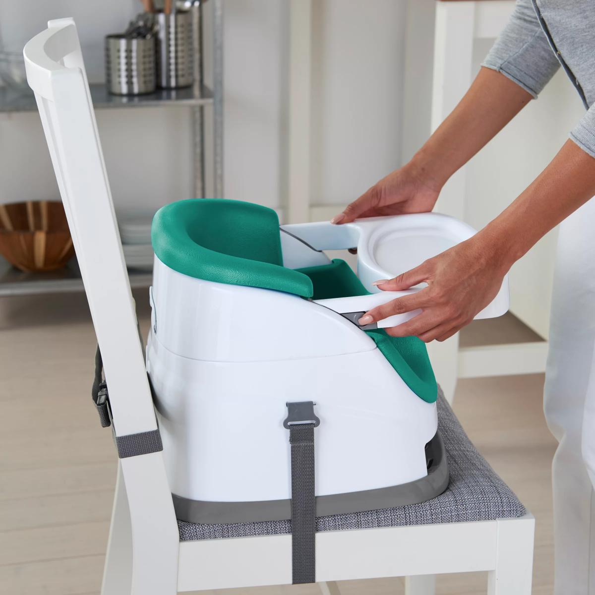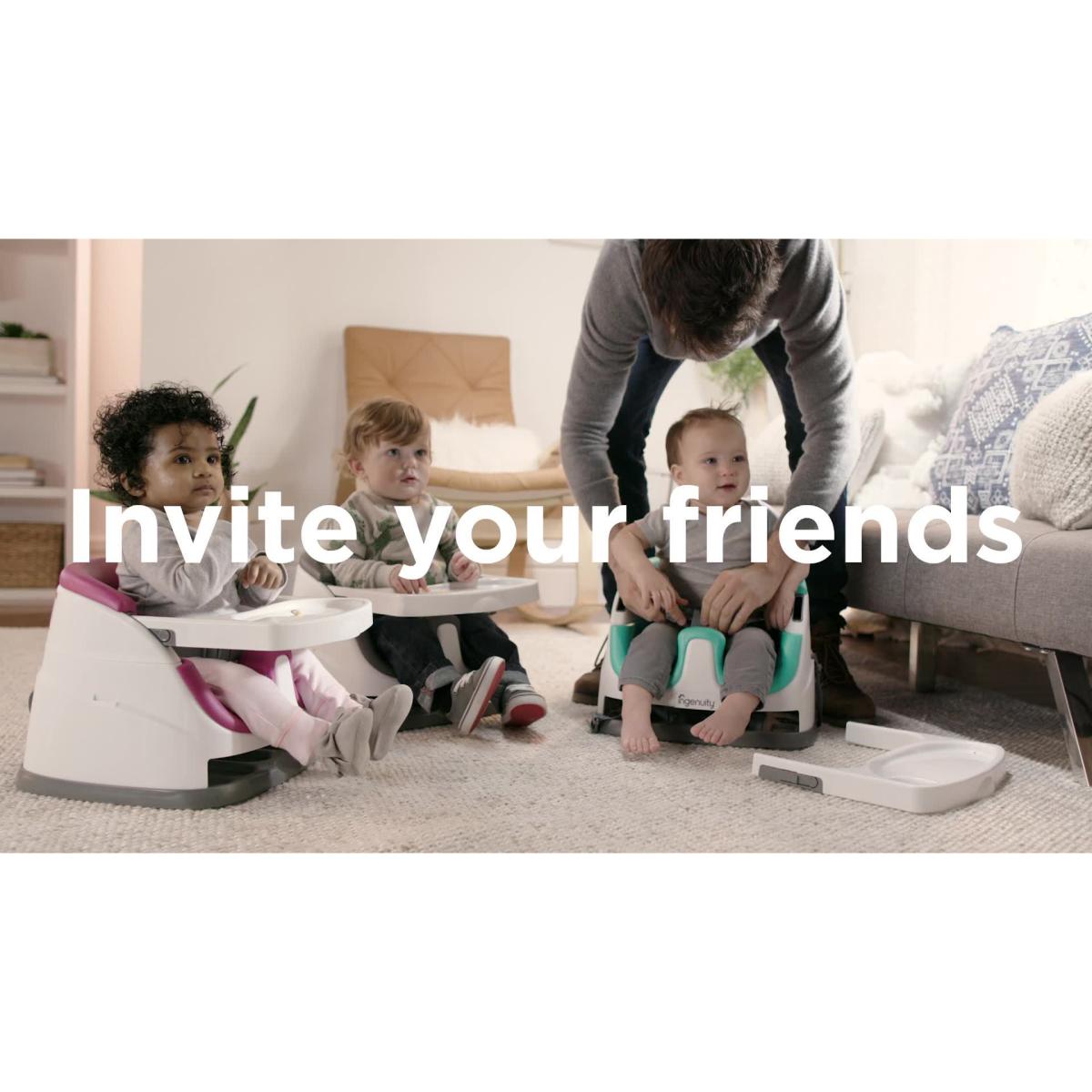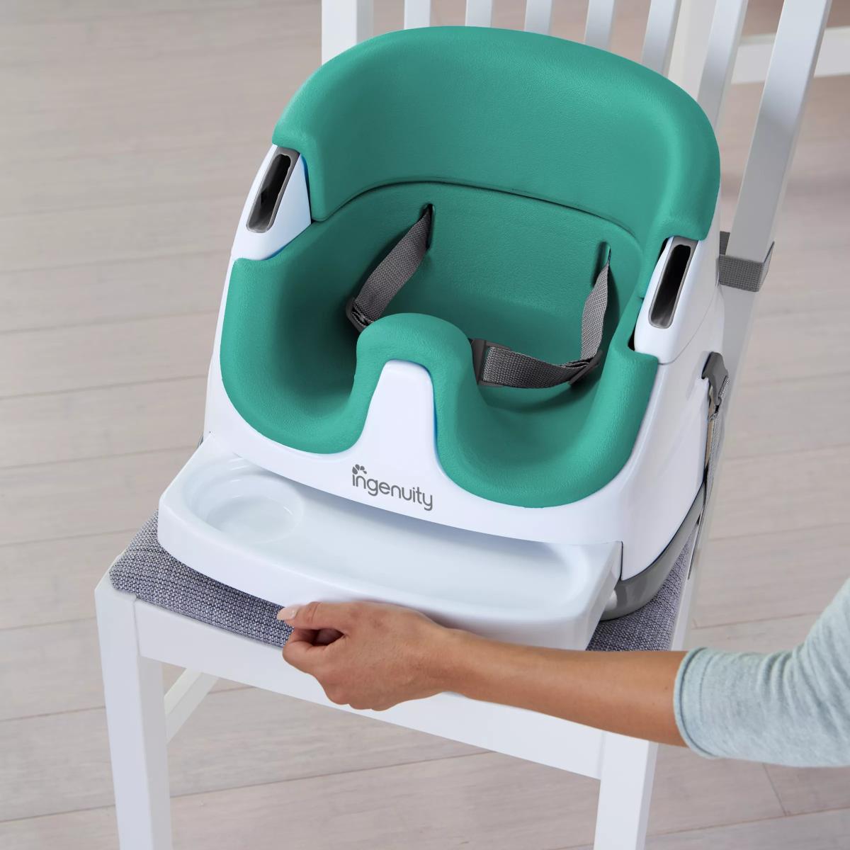 Meals are an important part of family time. Enjoy more laughter and conversation – including baby talk – by giving your little one a seat at the table. The Ingenuity Baby Base 2-in-1 Booster Seat easily attaches to dining chairs so your baby can sit up higher and see more during family dinners. This portable baby feeding seat works just as well sitting with you at the table or as a floor seat during playtime. The removable tray gives your baby her own perfectly sized table, so snacks or toys are easily within reach. When not in use, the tray conveniently tucks away right underneath the booster seat itself. As your baby grows, you can remove the foam seat insert and convert the baby booster into a toddler seat. For all those meals in between, you can count on the wipeable seat and dishwasher-safe tray to leave you more time for family catch-up and less for kitchen clean-up. Key features: Wipeable feeding seat and washable tray for easier cleaning Safe & secure baby seat for sitting up Converts from baby booster to toddler seat Removable tray stores neatly under the booster seat Mealtime seat for at home or on the go use BPA-free tray