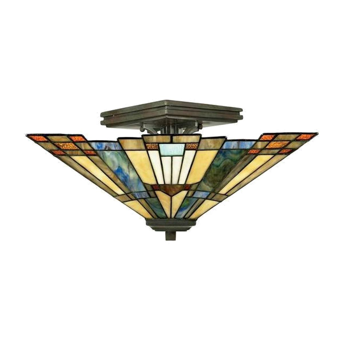 Inglenook 2 Light Tiffany Semi Flush Ceiling Light Bronze, E27 - Bronze