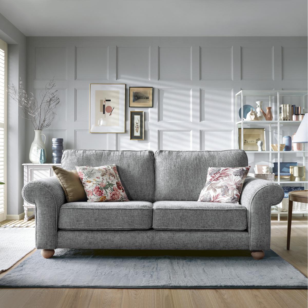 I love this three-seater in steel grey because of its versatile, understated appeal. It works brilliantly in both modern and traditional interiors, offering a neutral base that easily pairs with colourful accents or crisp monochrome schemes. To style it well, add textured cushions and throws to introduce warmth and personality. Practical tip: keep the colour palette simple to maintain a sophisticated vibe, or layer with bold accessories for a lively, eclectic look. Its classic shape and neutral tone make it a reliable focal point for any living room, whether paired with sleek, contemporary pieces or more vintage-inspired furnishings.
