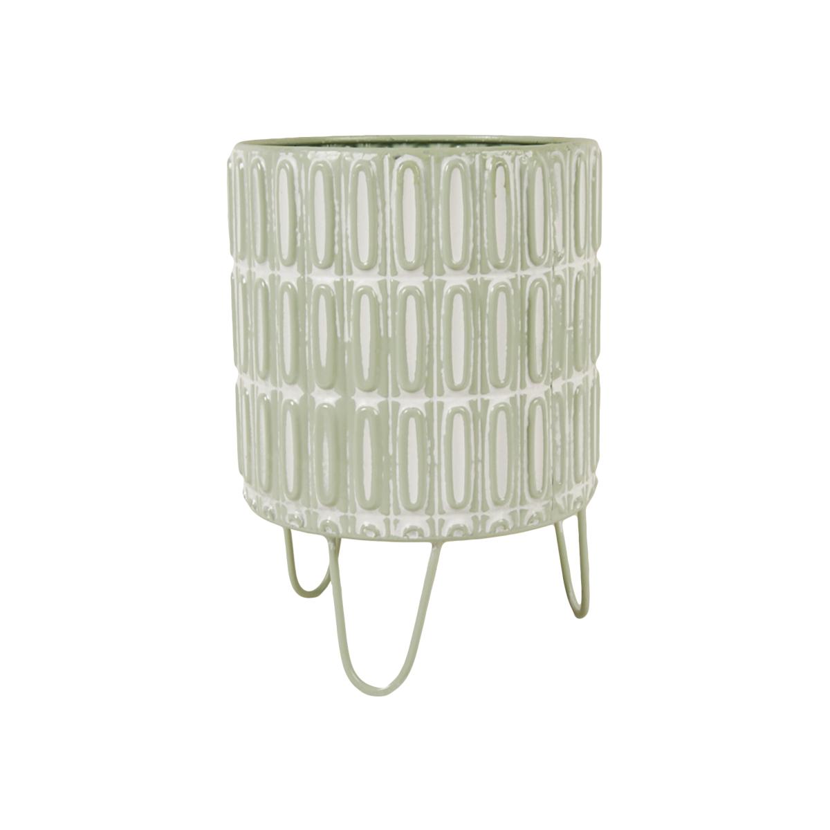 I love this little pot - it’s a great way to bring a touch of subtle colour and texture to a space. The sage hue works particularly well in modern, minimalist interiors or in kitchens and bathrooms where soft, calming tones are desired. Its metal finish adds a stylish industrial edge, making it versatile enough to mix with both contemporary and vintage decor. Practical styling tips include pairing it with taller, wispy greenery like ferns or grasses to highlight its height, or use it on a side table or windowsill as a standalone accent. Its size makes it ideal for small plants or succulents, helping to keep your space feeling fresh and curated without overwhelming the surroundings.
