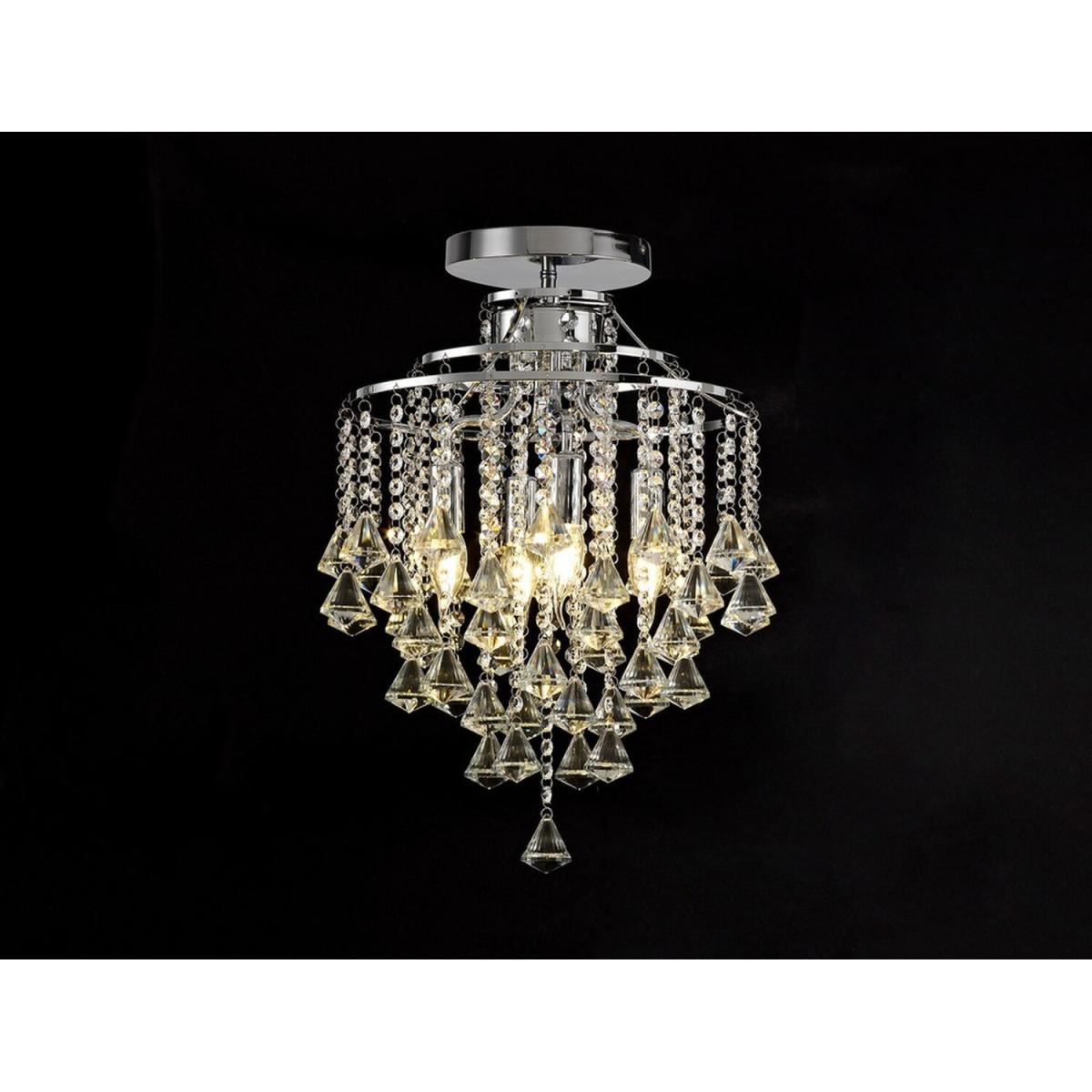 A flagship range of fittings that are dressed with an excessive amount of high quality crystal. Suspended from a Polished Chrome or French Gold framework are strands of clear octagon crystals supporting a larger clear crystal prism. The sheer quantity of crystal faces within any of this fixtures, create an immense amount of sparkle and spectral colour.