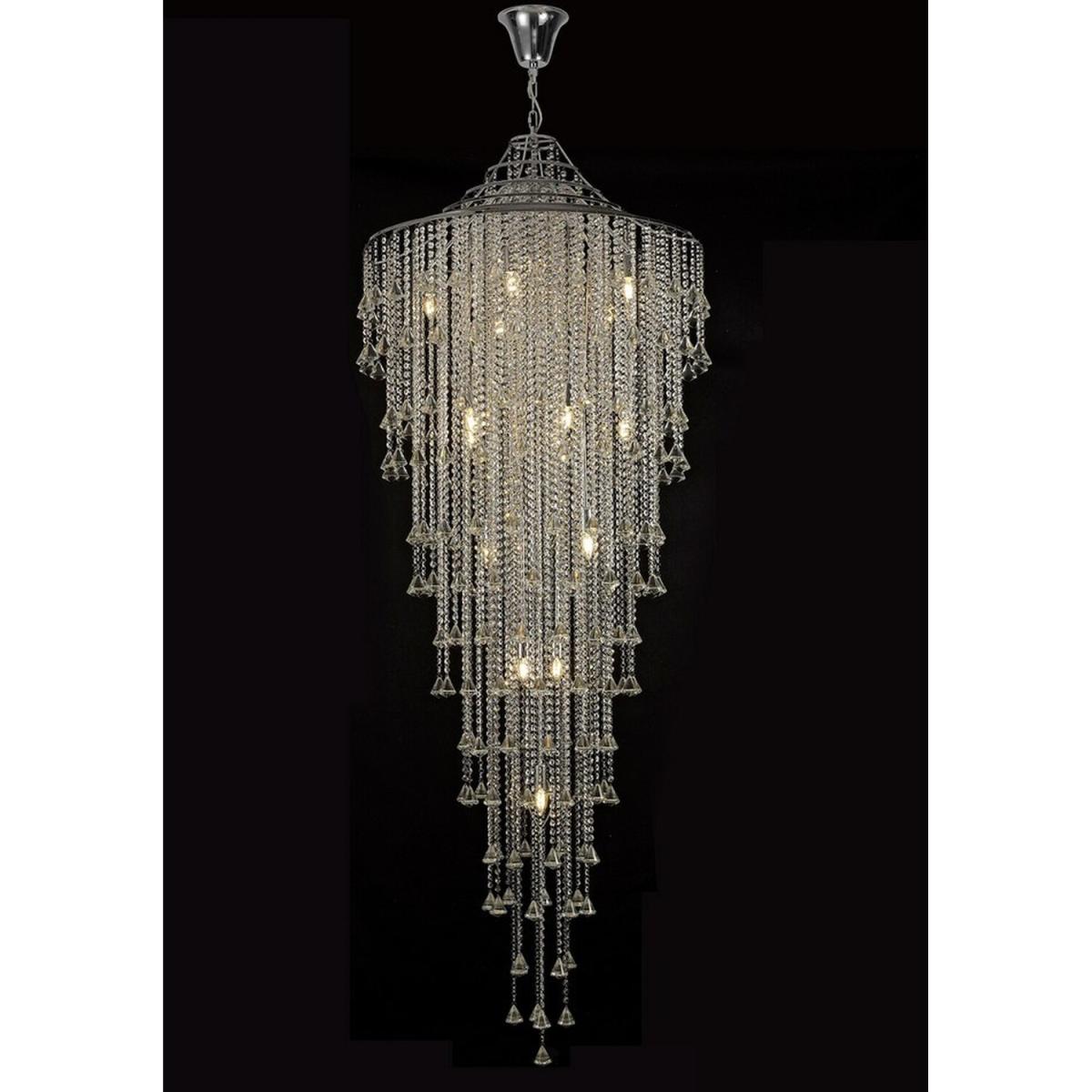 Inina Tall Ceiling Cluster Pendant 15 Light Polished Chrome, Crystal - Polished Chrome