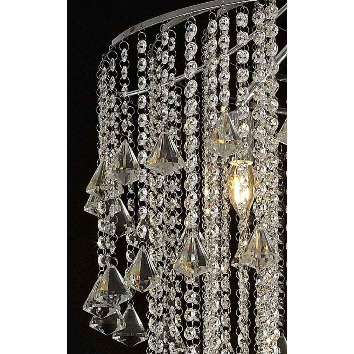 A flagship range of fittings that are dressed with an excessive amount of high quality crystal. Suspended from a Polished Chrome or French Gold framework are strands of clear octagon crystals supporting a larger clear crystal prism. The sheer quantity of crystal faces within any of this fixtures, create an immense amount of sparkle and spectral colour.