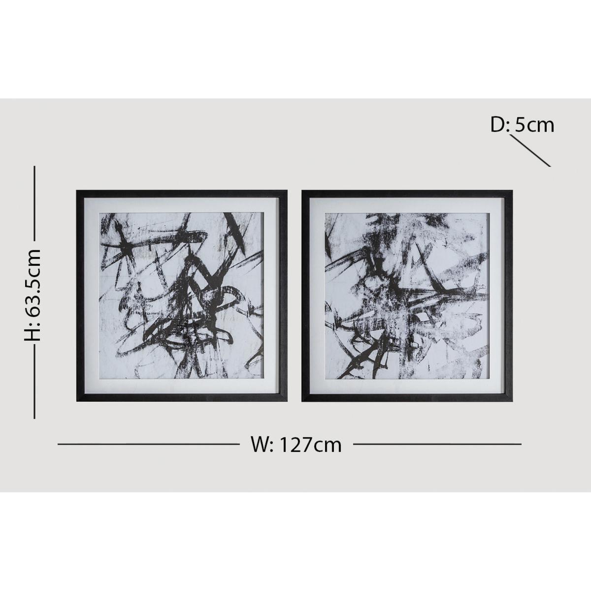 Discover the graceful beauty of brush strokes with the Ink Shades Abstract Wall Art, Set of Two, an abstract print to beautify your walls with grace. Painted with energic strokes in black and greys, this art is mysterious, conceptual and simply mesmerising. Its crisp black frame highlights its clean aesthetic, transforming this accent into a stunning focal point as soon as you hang it onto a wall. We believe this art is perfect for modern and contemporary homes with deep painted walls and exuberant decors. Plastic, GlassH:63.5cm x W:63.5cm x D:5cm; 9kg