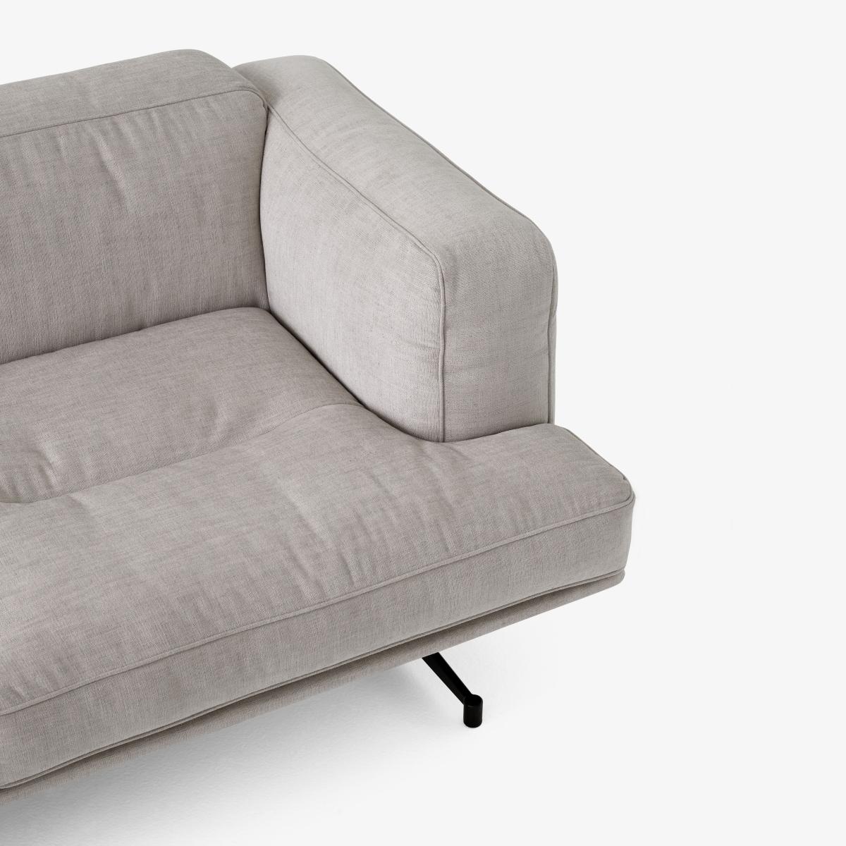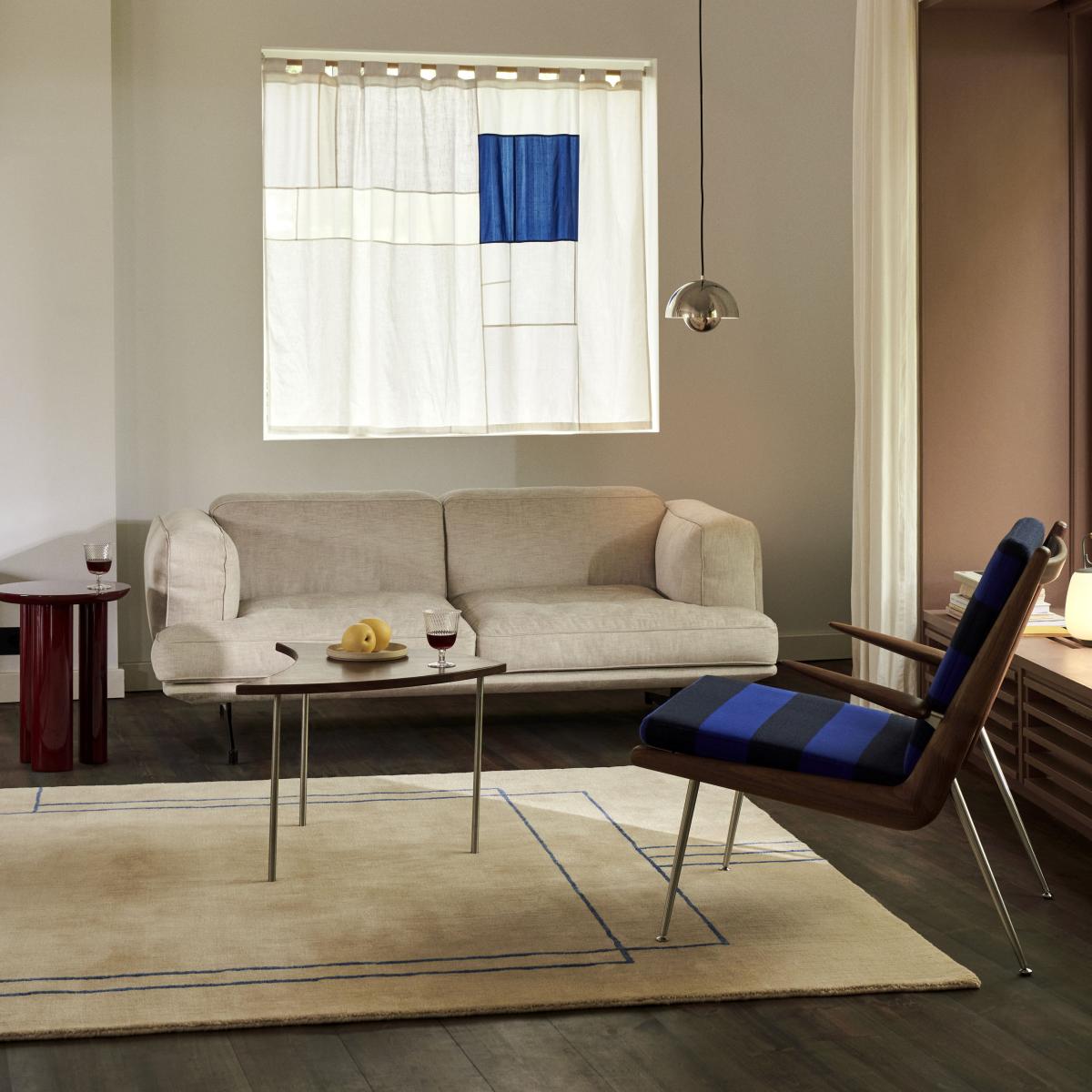 To create the Inland sofa, the Norwegian design studio Anderssen & Voll drew inspiration from modernist architecture. This sofa offers a deep and comfortable seat combined with an extreme visual grace. Despite the huge volume of the seat, the silhouette remains ethereal thanks to the slender base in black steel.