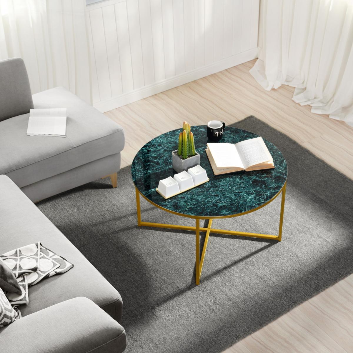 I love this mini green coffee table for its bold colour and versatile design. It works particularly well in contemporary or eclectic interiors where a pop of colour can lift a neutral palette. Its rounded shape creates a softer, more inviting focal point that can be styled simply with a few accessories like candles, books, or small decorative objects. Practical tips include pairing it with a mix of textures on the surrounding seating or layering with rugs to define the space. Its size makes it perfect for smaller lounges or as an accent piece in larger living rooms, adding personality without overpowering the room.
