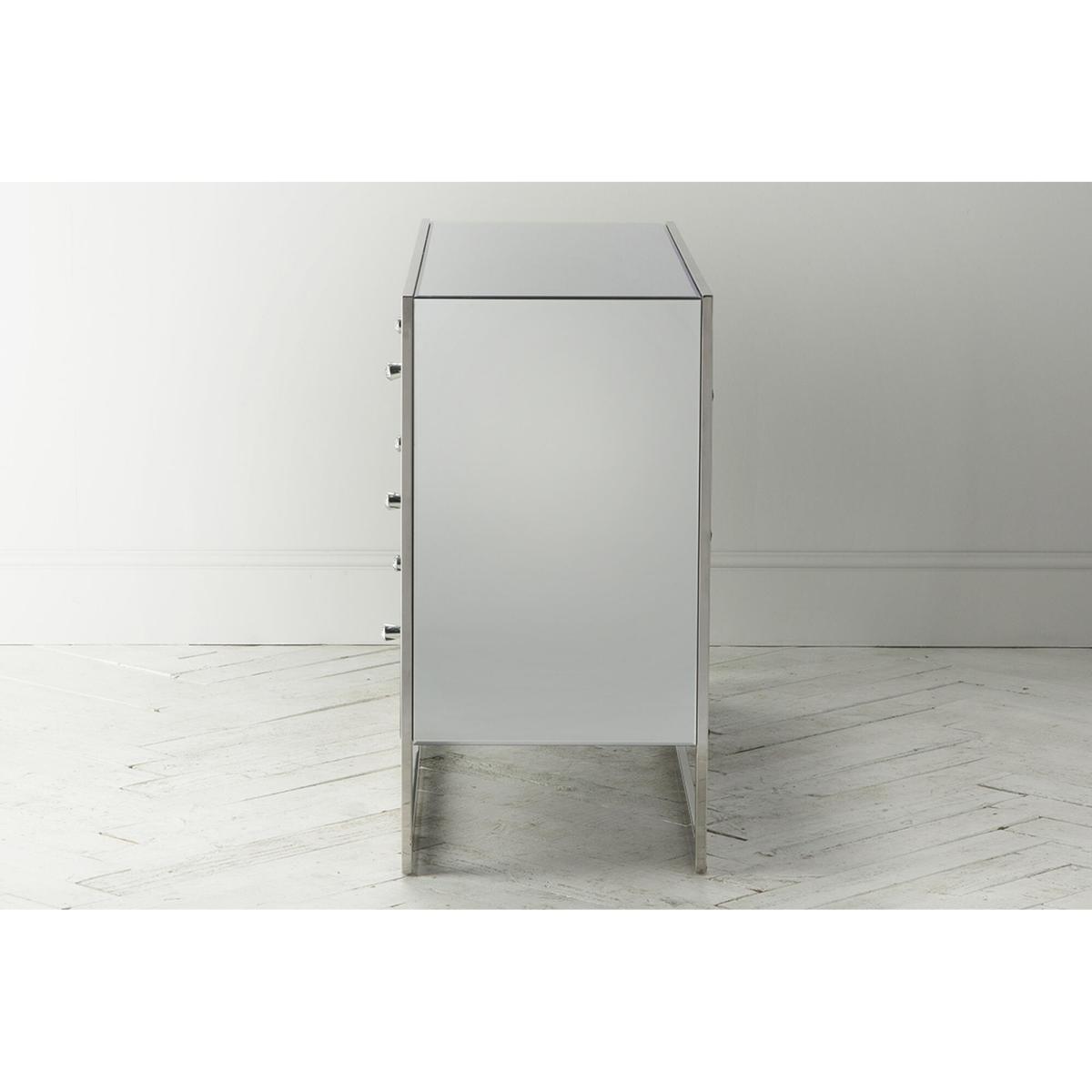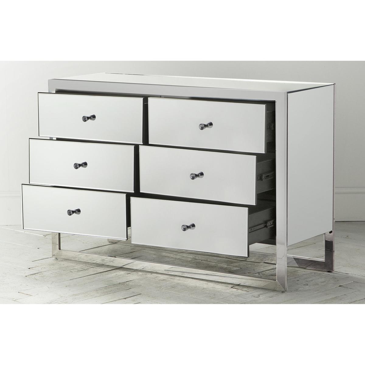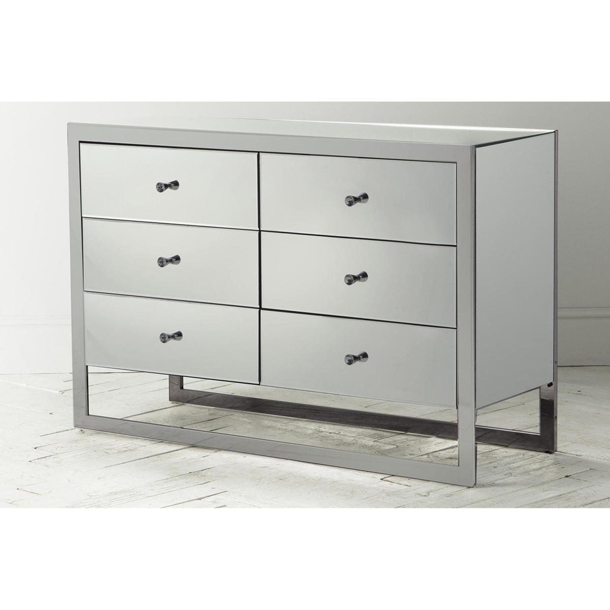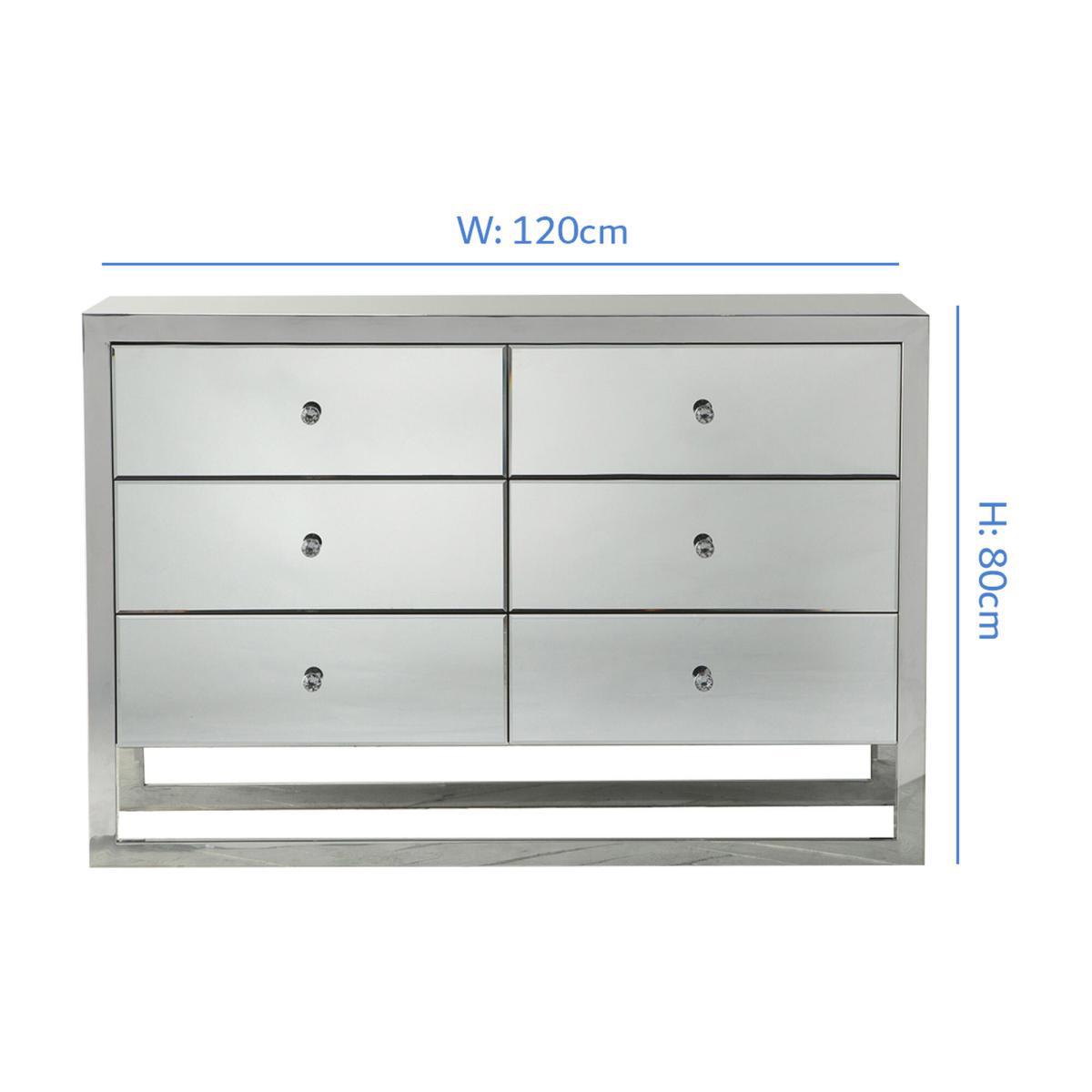 I love this mirrored chest of six drawers for its sleek, contemporary look that can add a touch of glamour to various interiors. It works particularly well in modern or minimalist spaces, where its reflective surface helps to open up the room and create brightness. Practical styling tips include pairing it with metallic or glass accessories to enhance its reflective quality, and placing it against a colour contrasted wall for added visual impact. It's versatile enough to be used in a bedroom for extra storage or in a hallway as a statement piece, making it both functional and stylish.