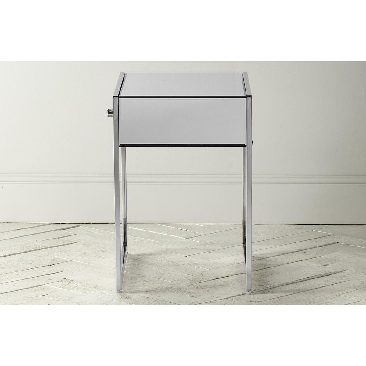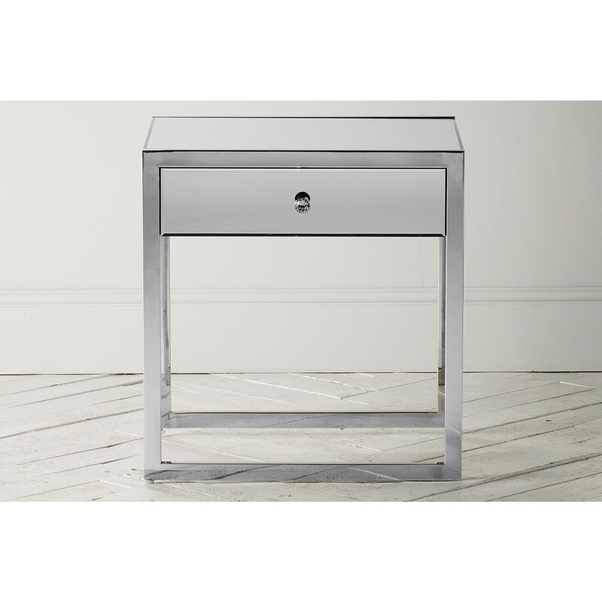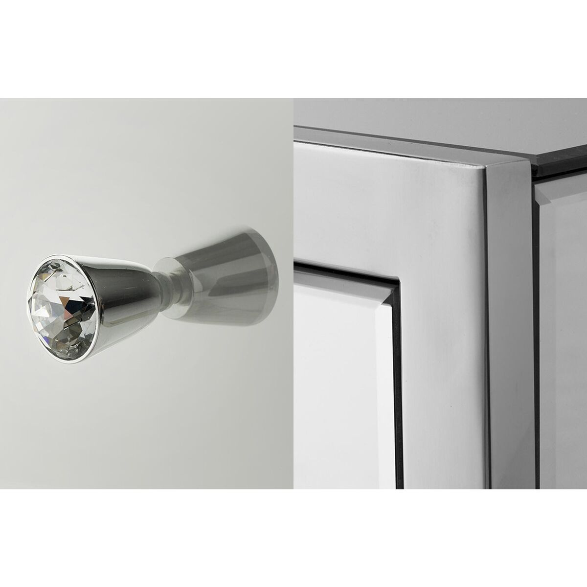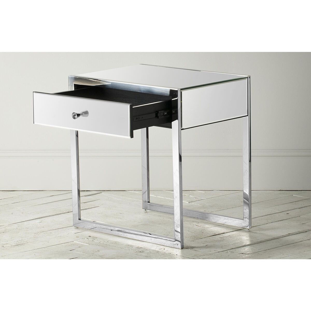 Featuring stylish stainless steel legs in a bright finish. The Inna range has bevelled glass tops and silver handles finished with crystal detail. From books to clothes to trinkets, the Inna Side Table is the perfect sleek mirrored addition to any living room, compact home or all white decors. With one drawer for extra storage, and the decor built right in, the range speaks for itself.