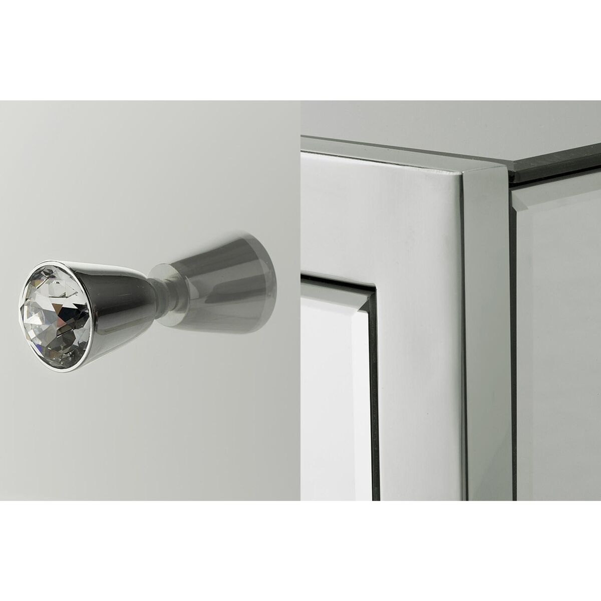 Featuring stylish stainless steel legs in a bright finish. The Inna range has bevelled glass tops and silver handles finished with crystal detail. From books to clothes to trinkets, the Inna Console Table is the perfect sleek mirrored addition to any living room, compact home or all white decors. With two drawers for extra storage, and the decor built right in, the range speaks for itself.