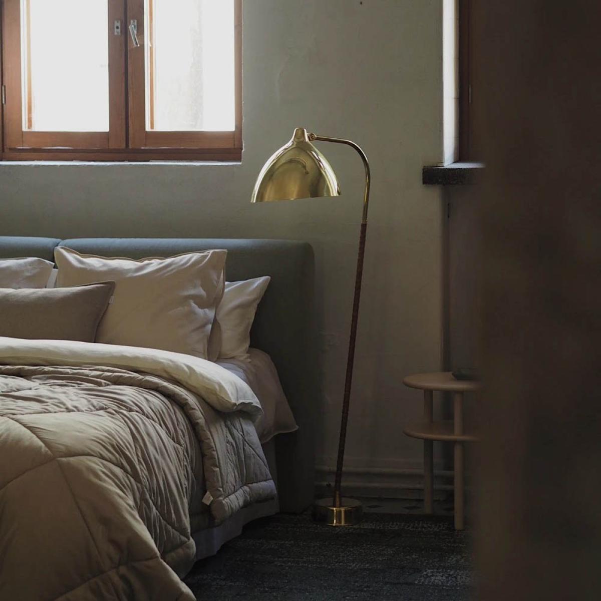 I love this brass floor lamp for its sleek, modern aesthetic with a touch of sophistication. Its minimalist design makes it versatile enough to complement a variety of interiors, from contemporary to classic, while the brass finish adds warmth and luxury. It works particularly well in living rooms or reading nooks where layered lighting is key, and its slim profile means it won’t dominate the space. For practical styling tips, try pairing it with neutral-toned furniture and textured accessories to let the brass stand out, and consider positioning it near a cosy armchair or sofa for functional, ambient lighting. Its understated elegance makes it a great investment piece that brings both style and practicality to any home.