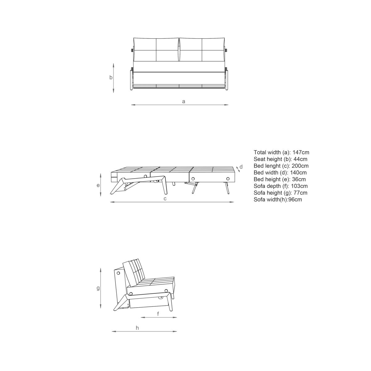 Product Information Bring natural Scandinavian design home with the Cubed 140 sofa bed that's designed for compact living. Sitting on solid oak legs it starts out as a small two-seater sofa and then folds out into a bed measuring W140 x D200cm. And despite the small proportions there's even storage in the seat for spare bedding. Flat pack expertsForget the hassle of trying to manoeuvre furniture up and down stairs or through narrow doorways. Innovation Living sofa beds are delivered flat-packed in boxes to ease handling throughout the delivery service. And don't panic at the idea of it being in boxes. Yes it takes a bit of self-assembly, but the comprehensive assembly guide makes it a quick and easy process. Innovation Living™ is a Danish company with more than 30 years of experience specialising in sofa beds. Since 1989 the company has been committed to producing innovative designs, combining practicality, durability and the most recent technology. Innovation Living’s mission is to offer multifunctional sofa beds that expand living spaces, with Danish design heritage at its heart. Try before you buyWe're confident in our furniture's quality, but it's always a good idea to check that it's a good personal fit for you. Sofas, Sofa Beds & Chairs Buying Guide Measuring Up for Furniture Guide Upholstery Care Guide