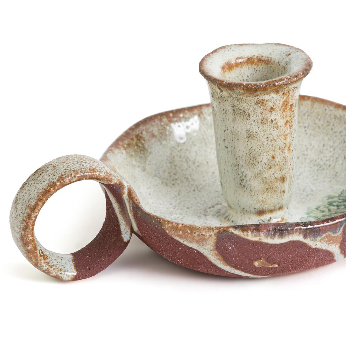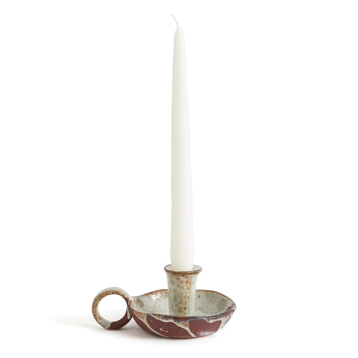 Vintage style, flea market spirit. Handmade, the Inola ceramic candle holder allows you to create a warm atmosphere in an interior. Thanks to its handle, it is easily placed on a table. Decorative and authentic. Product Details • Ceramic body • For 2cm diameter candle (not included) • 1 handle. Quality Info • Hand-crafted, each piece is unique: colours and dimensions may vary from product to product. Dimensions • Diameter: 14.5cm • Height: 6.5cm