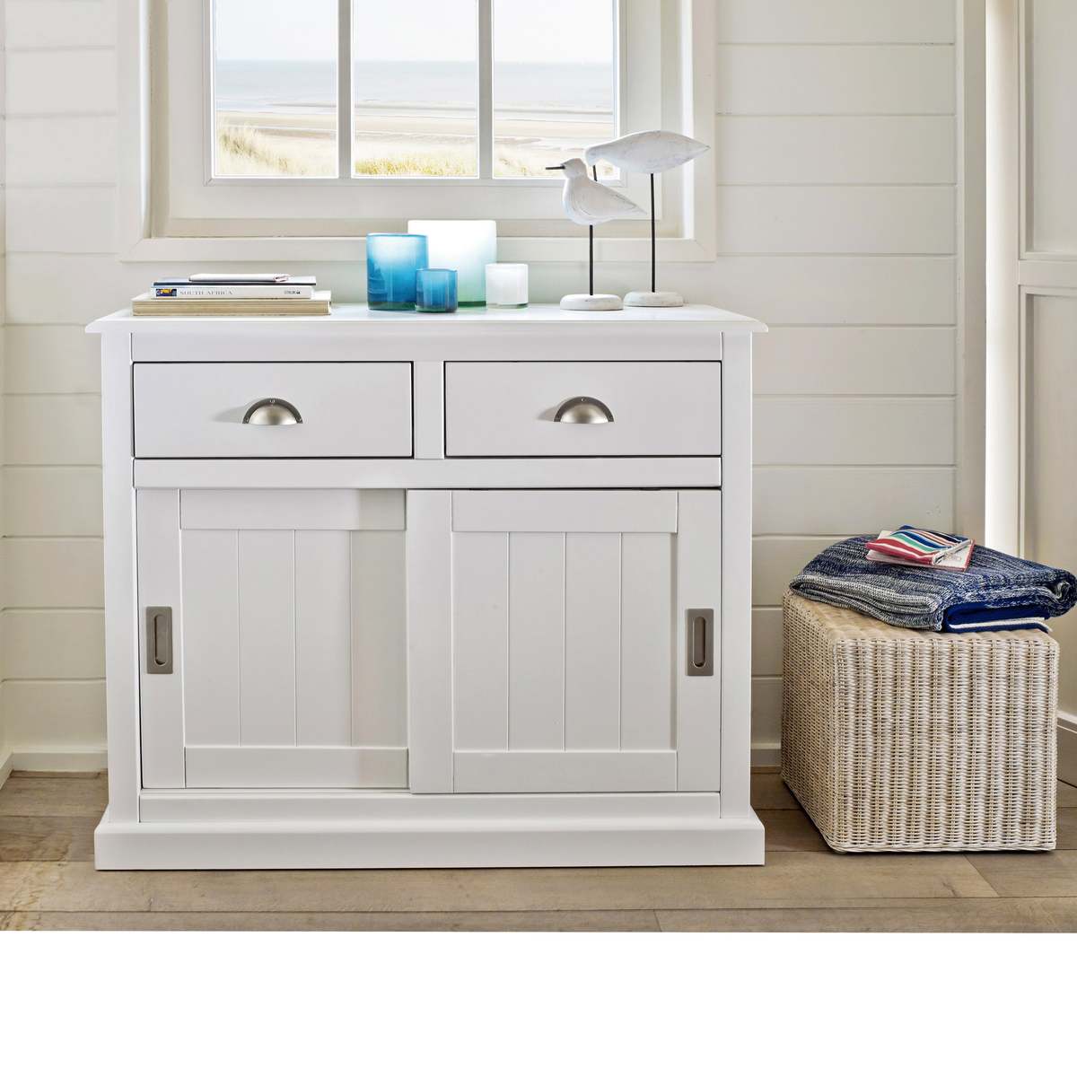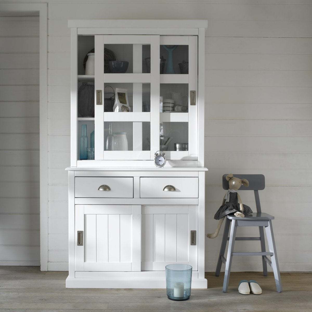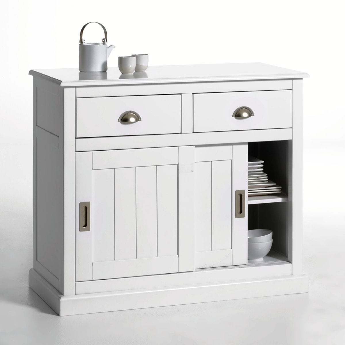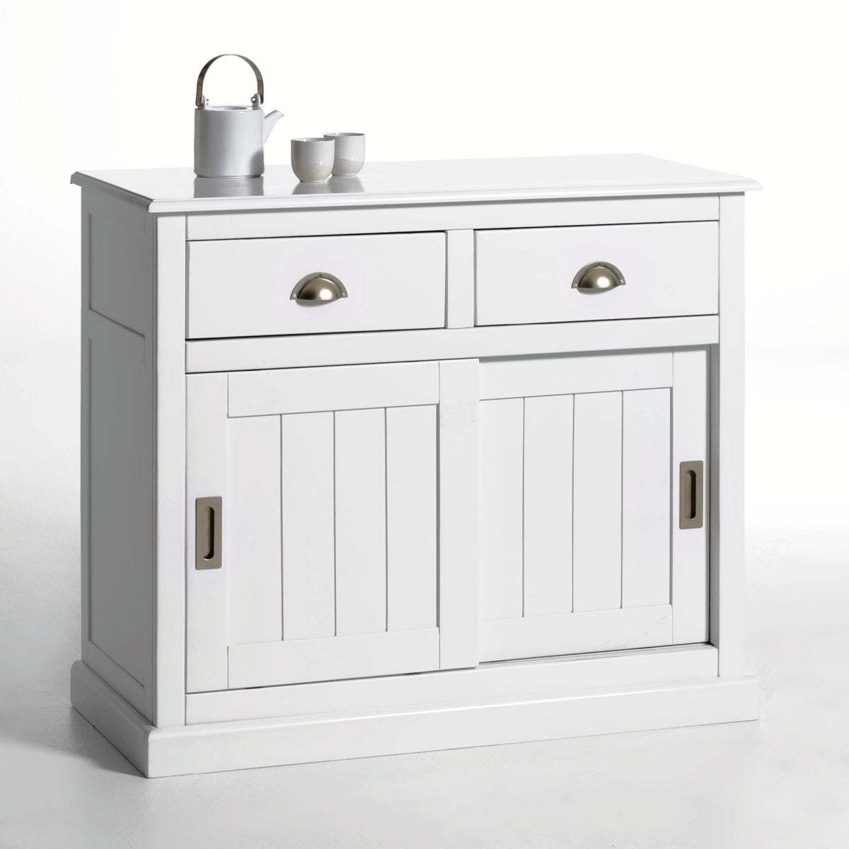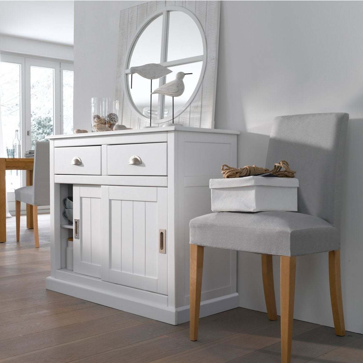 I really like this sideboard for its versatile, timeless design that works well in both classic and contemporary interiors. The solid pine construction offers a warm, natural feel that adds character to dining rooms, living spaces, or hallways. Its practical storage with two drawers and sliding doors is ideal for organising everything from tableware to everyday essentials. Styling tip: keep the surface relatively minimal for a modern look, or dress it with a few decorative accessories, such as vases or candles, to soften the overall feel. It pairs particularly well with neutral palettes, but can also complement more colourful schemes when layered with textured textiles and metallic accents for added interest.