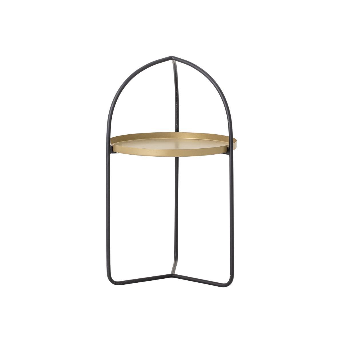 A sophisticated retro style for this small metal pedestal table with its very chic golden top. The black structure has a singular, functional shape as it serves as a handle to move the table around with ease. This pedestal table fits in everywhere: as a bedside table, side table, next to a sofa or dining table during a meal, on the terrace for coffee. The removable top is perfect for serving an aperitif, clearing the table, bringing condiments. This pedestal table can also be used to place a trinket tray on in an entrance hall, a lamp or to display your favourite decorative items. You can also use this small table to hold a flowerpot. Raised high on their pedestal, your plants will no longer go unnoticed: with all eyes on them, they’ll become the focal point of your decor!.