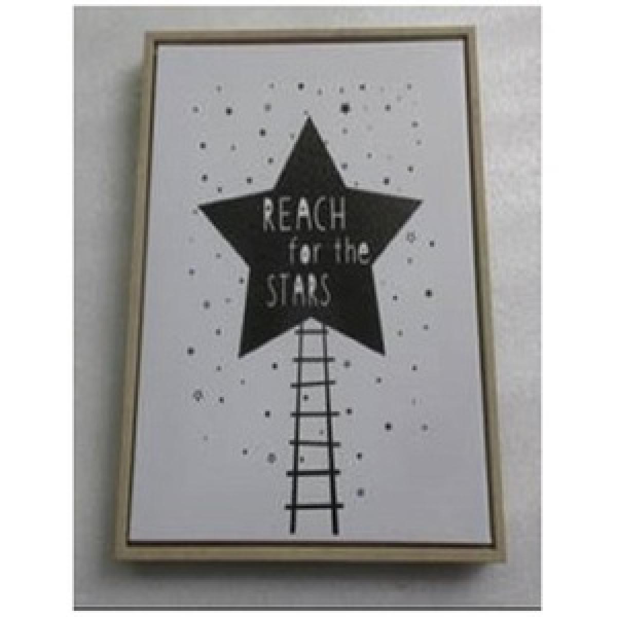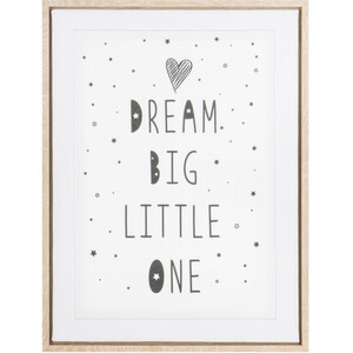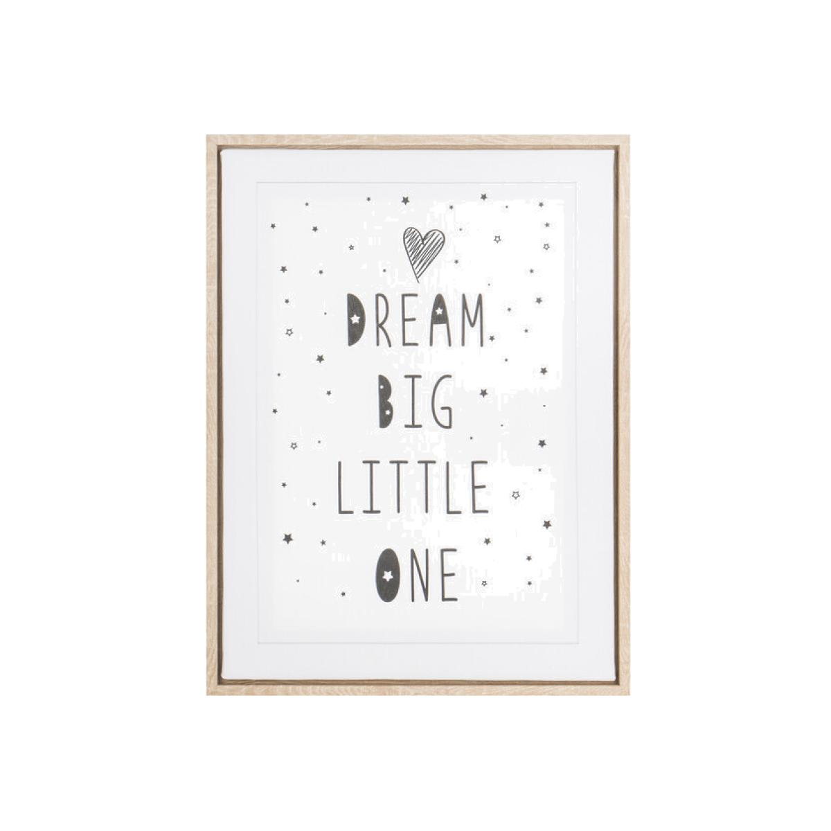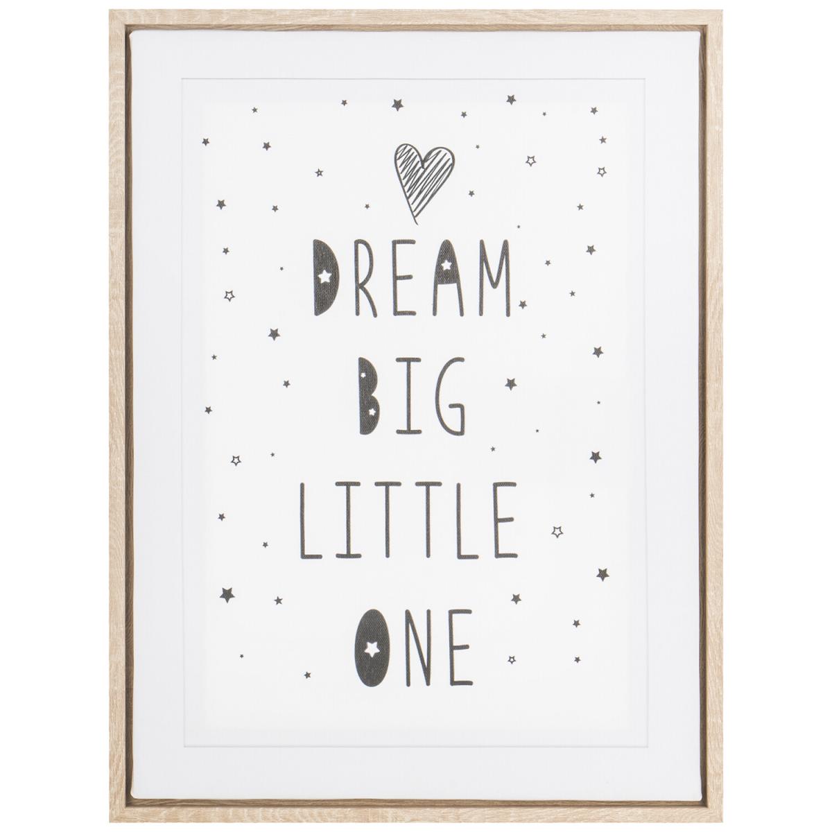 The Inspirational Monochrome Framed Print is a perfect piece of wall art for your child's bedroom. Featuring one of two designs with a "Dream big little one" or "Reach for the stars" sentiment, this framed piece will fill your baby's bedroom with love.