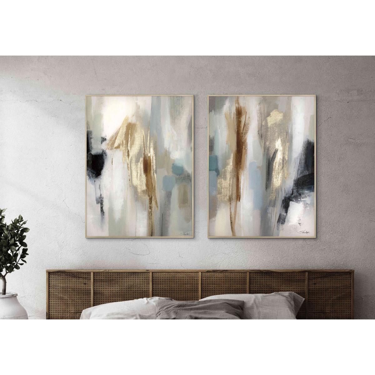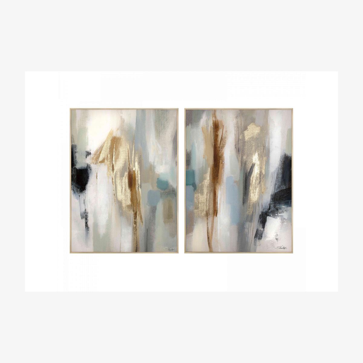 Make a statement with these fabulous abstract framed canvases. Dynamic yet soothing, they’re just what your walls need. Why you'll love it An abstract duo of prints with tender pastel tones. Gold foil embellishes these inspiring canvases. What you need to know Canvas with wood frame. Indoor use only. Dust with a soft, lint-free cloth. Dimensions Height: 120 cm (48 inches) Width: 90 cm (36 inches) Depth: 3 cm (1 inches) Weight: 5 kg