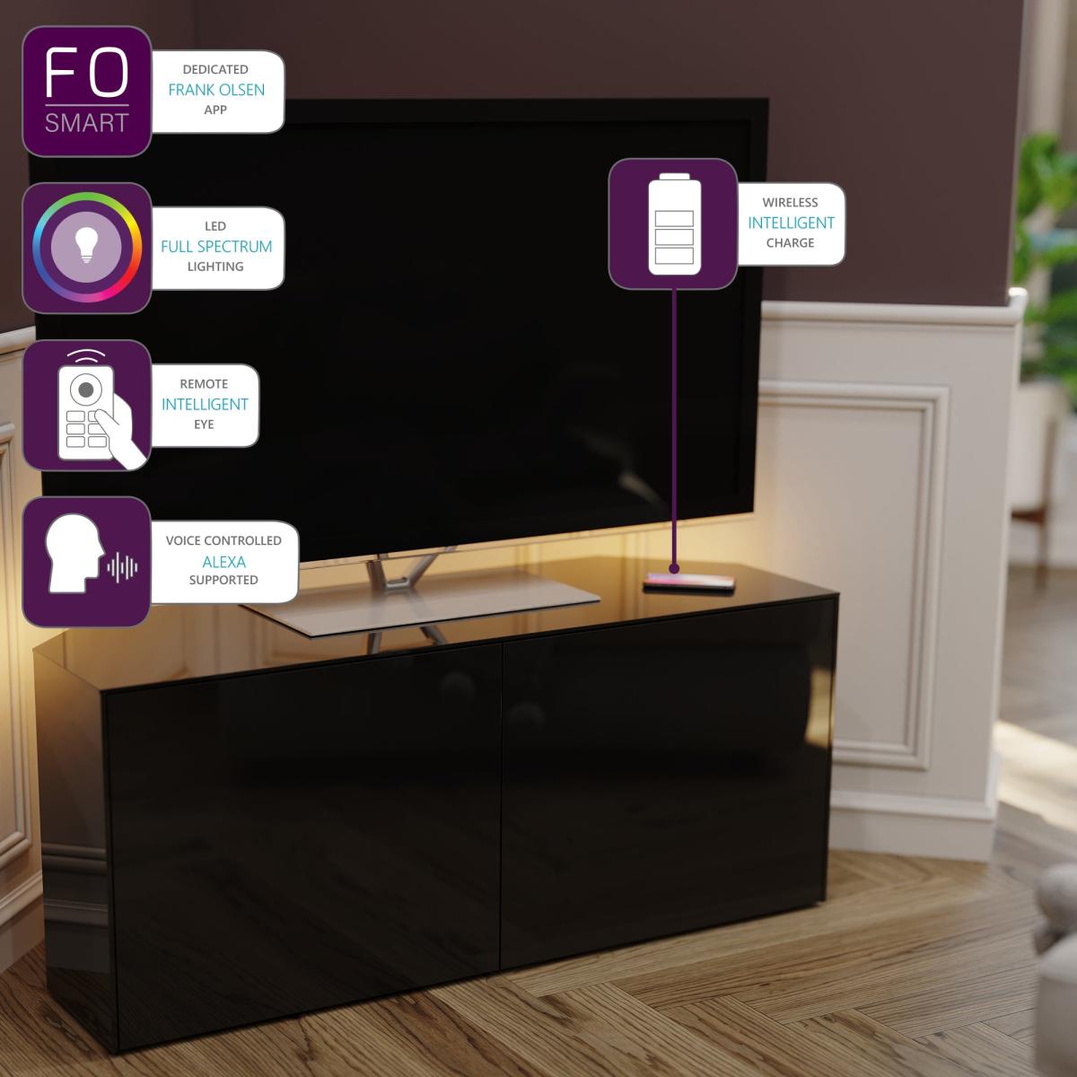 * Full colour spectrum LED rear mood lighting* Discreet wireless phone charging compatibility* Built in intelligent eye* Adjustable internal shelves* Recommended for up to 50" screens* Self-build, quick assemble system If you're looking for furniture that goes just that little bit extra, you may just love this Intel LED Corner TV Unit. This unit features full colour spectrum LED rear lighting to instantly change the mood and feel of your space for whatever occasion. Impress your guests by taking control via the free Frank Olsen Smart app or by voice command with Amazon Alexa. Effortlessly charge your phone without the faff or sight of wires thanks to the wireless charging capability. The high gloss and matching glass top creates a modern finish, internally you'll find shelves with fantastic storage capacity. This unit comes on castor wheels for easy movement when the interior design spark strikes next. Deliveries not included are Remote Scotland, Highlands, Ireland, Isle of Man, Channel Islands etc.