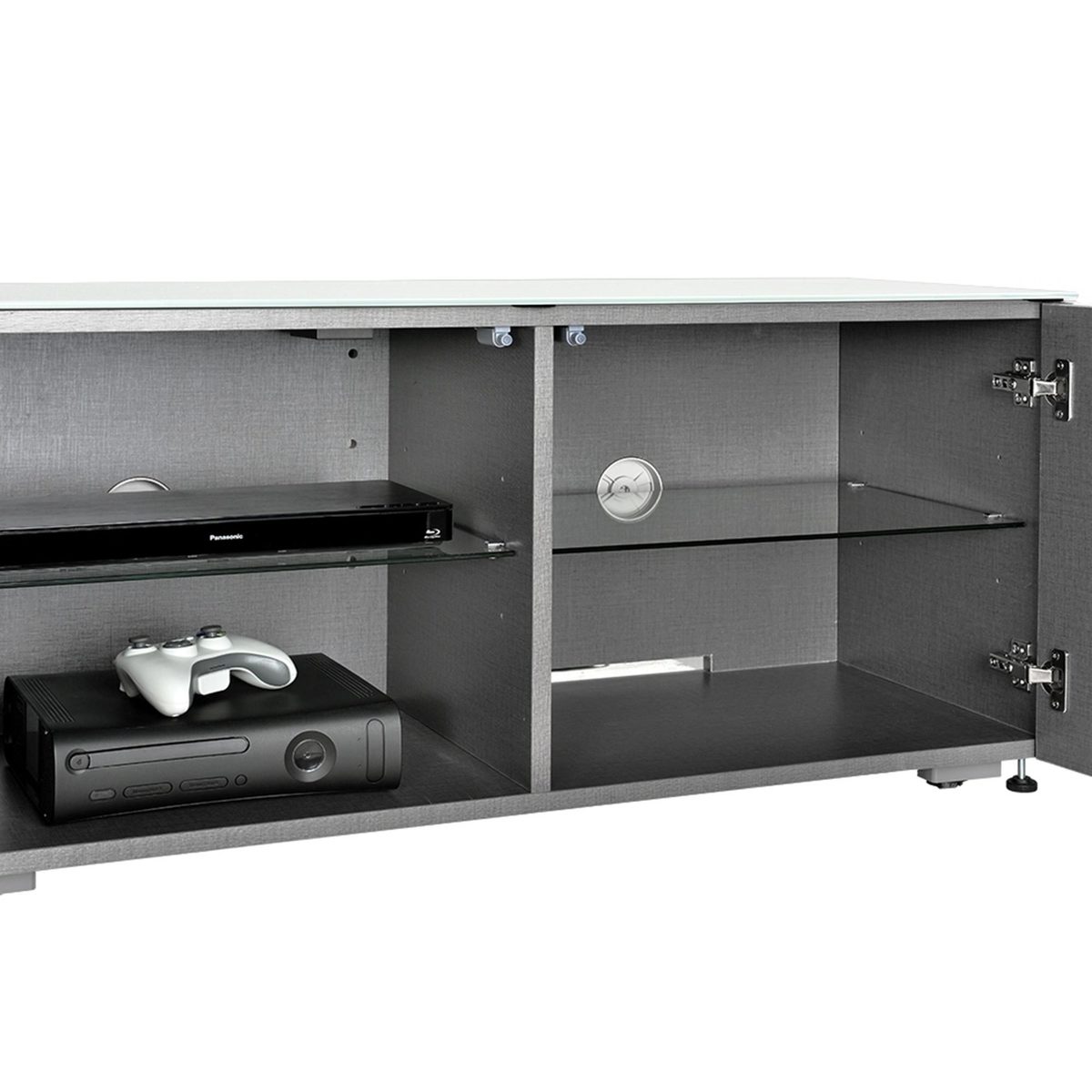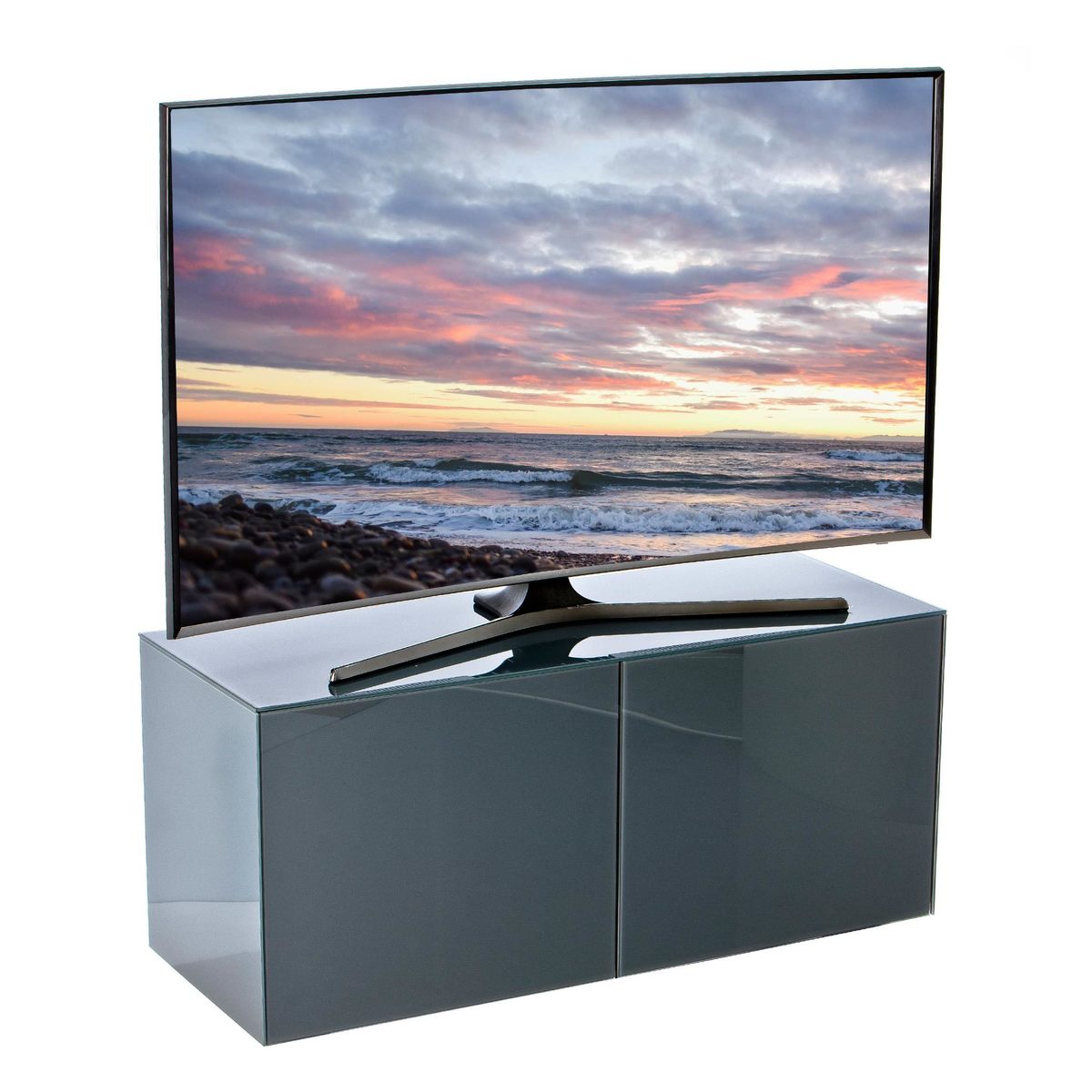 Boasting smooth clean lines in a gorgeous high gloss finish, with toughened glass top, sides and doors, the Concept TV unit offers a sleek modern look perfect for the contemporary home.;Designed with push to open doors which reveal its highly scratch resistant signature interior and adjustable glass shelves, this TV unit provides plenty of storage space perfect for hiding all your entertainment essentials.;The Concept 100 features intelligent eye remote control manager allowing you to keep its doors closed and still operate your equipment as normal. The intelligent eye system enables the use of up to 8 pieces of AV equipment without compromising the overall design. Beam through printed glass is used within its solid construction for ultimate practicality and style.;Please note: For none QI (wireless charge compatible) phones the cabinets are all supplied with both 1 x iPhone & 1 x Android microport, superslim wireless charging receivers. These simply sit under your existing phone case to make any phone work as wireless charging with the furniture. At approx 0.5mm thick, these receivers hide perfectly under a standard phone case.
