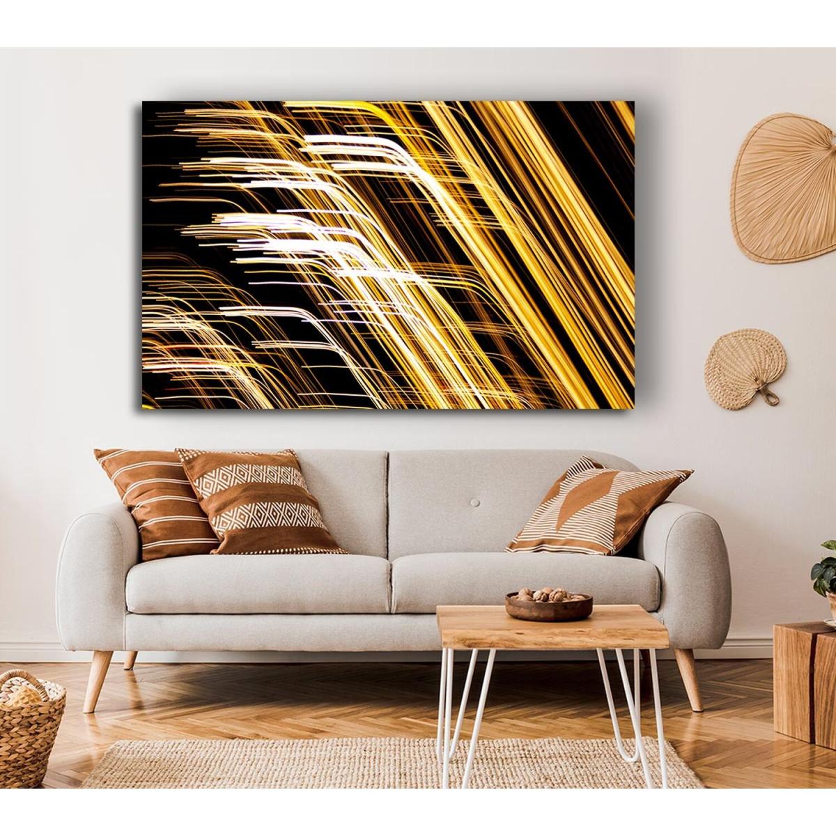 I love this piece for its bold use of yellow, which injects warmth and energy into a space. It works particularly well in modern or minimalist interiors where a pop of colour can really stand out, or in contemporary schemes that play with clean lines and striking visuals. For styling, consider pairing it with neutral or monochrome palettes to let the artwork truly shine, or incorporate subtle yellow accents elsewhere in the room for a cohesive look. Placing it above a sofa or a console table creates an eye-catching focal point, and due to its size, it’s best suited to spaces with enough wall space to breathe around it. Its abstract, dynamic aesthetic makes it versatile for living rooms, bedrooms, or even more creative workspaces.