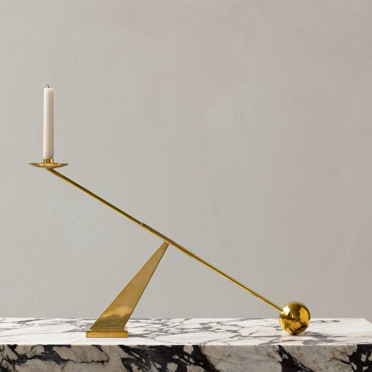 With its huge dimensions and sculptural look, the Interconnect candlestick is a bold centrepiece from the creative talent of Colin King. It stands out with its geometric form creating a simple yet effective illusion: a sphere, an angle and a line, which come together to create a unique design. Available in polished brass or painted steel, it goes beyond its intended use and can be exhibited as a minimalist and contemporary sculpture in its own right.