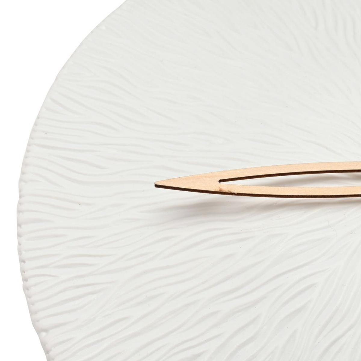 * Porcelain clock face * Wooden hands * Textured finish This Interval Textured Porcelain Wall Clock brings a modern touch to your space. The textured porcelain face adds depth, while the wooden clock hands stand out against the simple white backdrop. Without traditional numerals, the focus is purely on the texture of the porcelain and the simplicity of the design. Thanks to its quartz time movement, you can count on precise and reliable timekeeping: perfect for those seeking style and functionality in one.