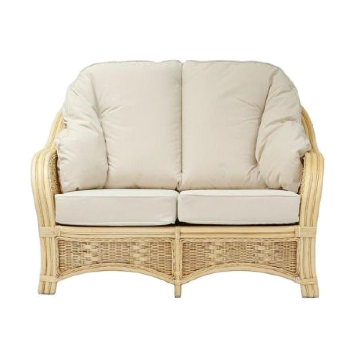 This strong yet graceful design has three sturdy cane poles that effortlessly flow around the entire frame creating an extremely comfortable shape. The intricate weave in light natural wash is reflected in each hand-crafted piece. Cocoon yourself in the lavish wrap around cushions and you won't want to move. There is a range of accessories and a matching breakfast set for two, the perfect addition for occasional dining. Exclusive hand crafted design Cushions made in the UK Also available in Frame only (cushions not included) Dimensions: 108cm (H) x 100cm (D) x 138cm (W) 2 Year Manufacturer's Guarantee All screens vary in colour reproduction and whilst every effort has been made to display the colour as accurately as possible it is for guidance only.