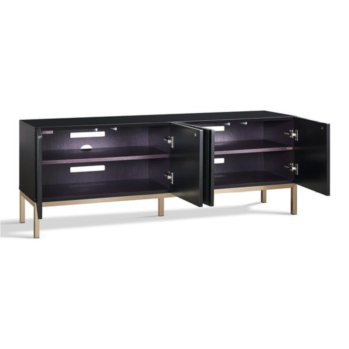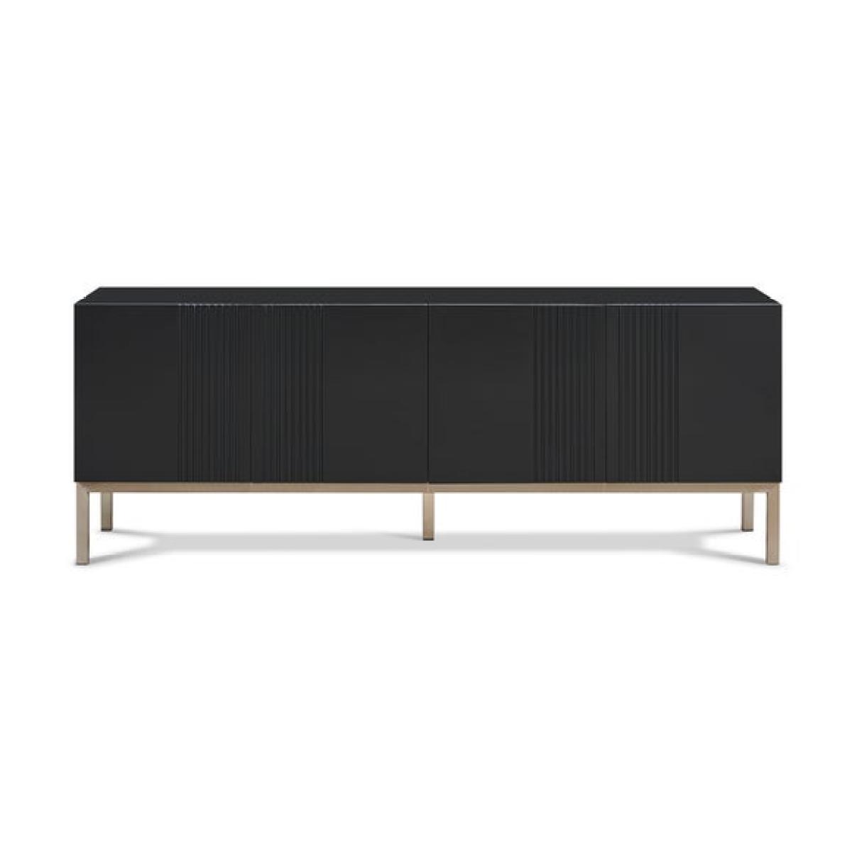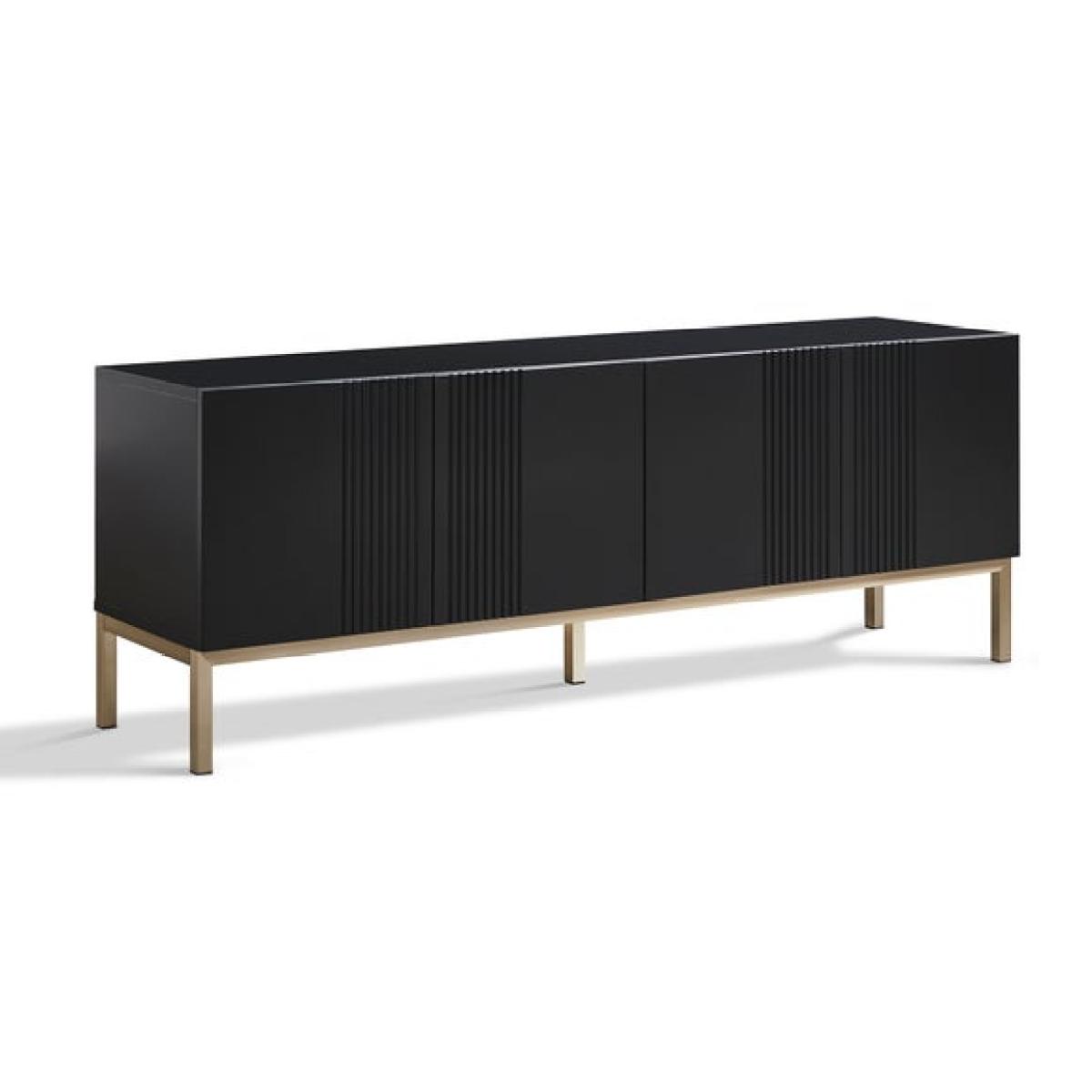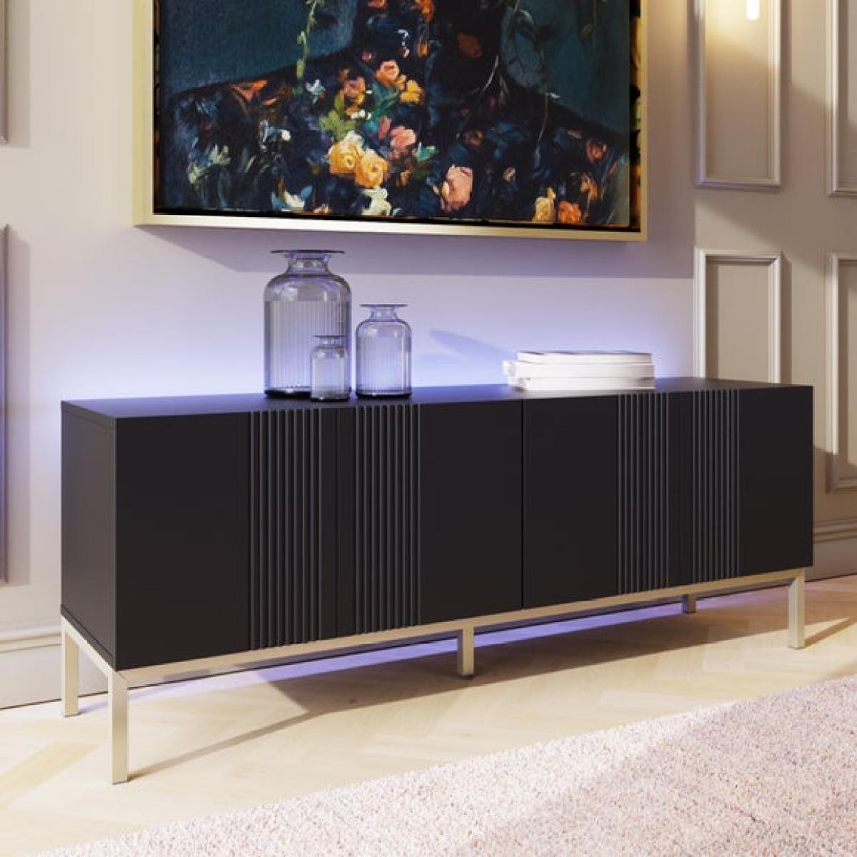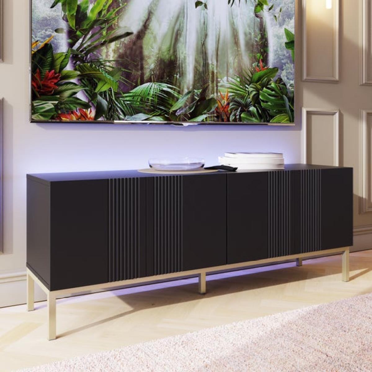 * Contemporary TV stand * Fluted design * Painted finish * Cable management * Brushed nickel legs Blending elegance and functionality, the Iona large TV unit features four fluted doors for a distinctive yet understated look. Inside, generous storage and integrated cable management keep media setups neat and organised. Its versatile design also works as a low-profile storage solution under windows or wall-mounted screens. Finished with brushed nickel legs and the collection’s signature detailing, this piece complements other Iona furniture for a sophisticated home.