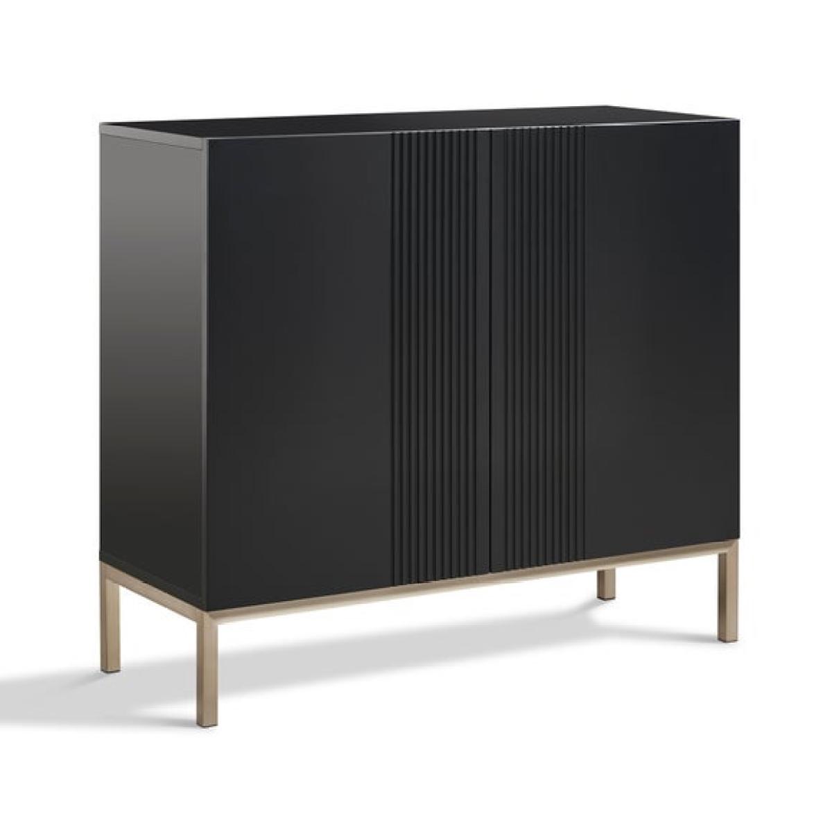 This small sideboard is a versatile piece that works well in a variety of interiors, from modern to minimalist setups. I love its sleek, matte black finish which adds a touch of contemporary sophistication, while the compact size makes it ideal for smaller spaces or as an accent piece in a larger room. Practical styling tips include layering decorative objects on top, like a vase or statement lamp, to bring personality to the piece without cluttering. Its clean lines also serve as a great backdrop for artwork or textured accessories, making it both functional storage and a stylish addition to your living or dining area.