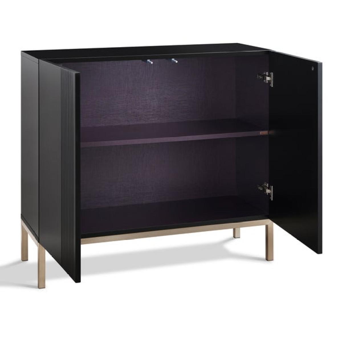 * Contemporary sideboard * Fluted design * Painted finish * Brushed nickel legs The Iona small sideboard combines timeless elegance with practical versatility. Signature fluted doors open to reveal a spacious interior, perfect for tableware, linens, or as a stylish drinks cabinet. Inside, the finish includes Frank Olsen’s signature midnight purple for a luxurious touch, while brushed nickel legs add warmth and sophistication. This piece pairs beautifully with other items in the Iona Collection, creating a cohesive and refined aesthetic.