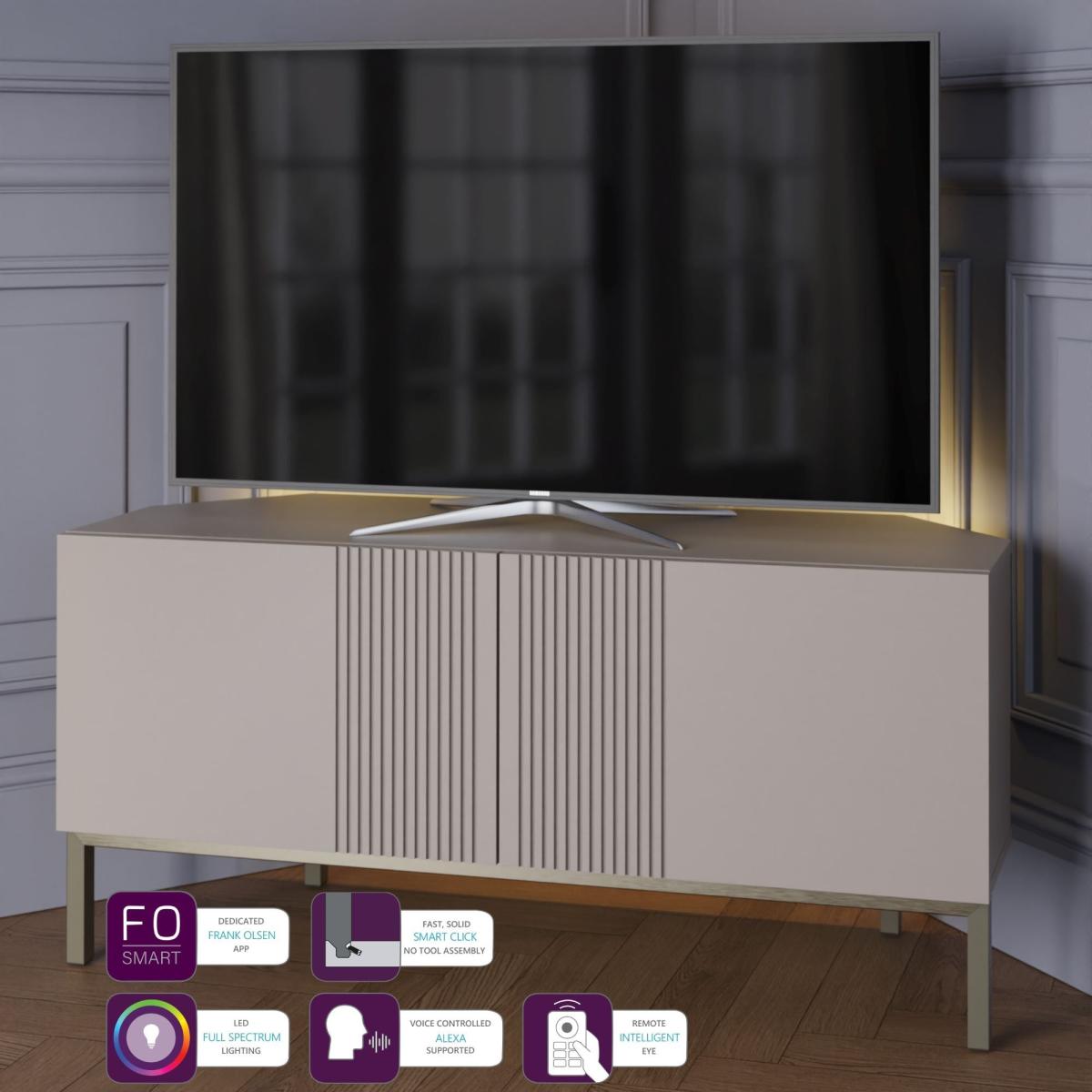 Maximize your living room space with our Iona Corner TV Unit. This two-door TV cabinet features a fluted design and a painted finish, making it the perfect addition to your corner space. With adjustable shelves, push to open doors, and a discreet wireless phone charge point, this TV unit offers both style and functionality. Plus, with integrated discreet SMART features and app and smart speaker operated back lighting, this TV unit is perfect for your modern home. Assembly Information: Up to five times faster than other standard self-assembly products, using a revolutionary furniture construction method that's easy, fast, and produces solid cabinets with no visible fixings. Our unique premium assembly method combines simplicity and strength, using hidden fixings for a sleek, seamless finish.