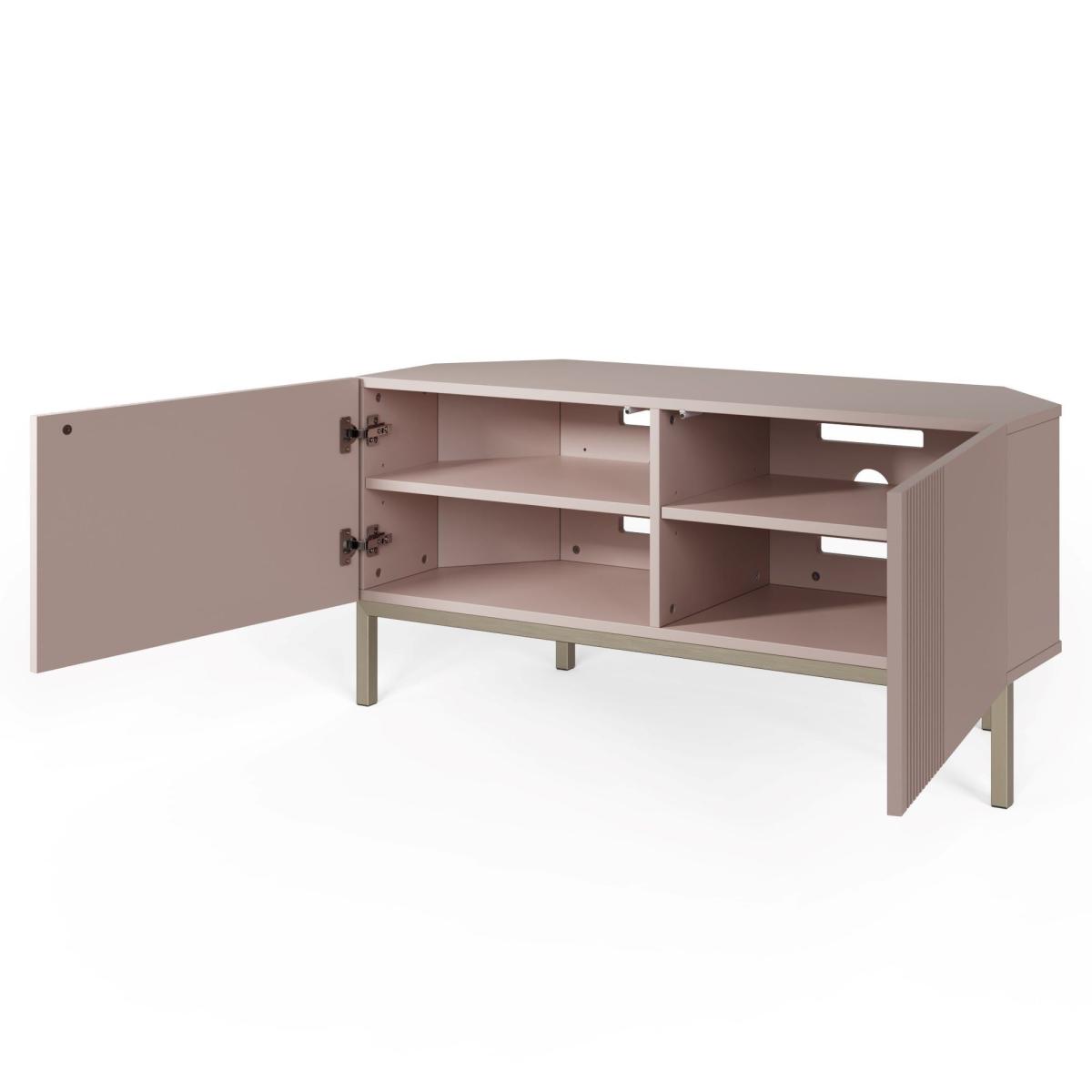 I’m a big fan of the mulberry corner TV unit for its clean lines and subtle ribbed detailing - it adds just enough texture without dominating your space. The muted pink-purple hue works brilliantly in contemporary or Scandi-inspired schemes, especially when paired with light timber floors and soft grey accents. For practical styling, tuck cables away through the built-in smart ports and keep shelving low-key with a mix of closed storage and a couple of small potted plants or ceramic vases. In a cosy flat or open-plan living area, position it where it can be viewed from multiple angles, then balance the look with a slim floor lamp or a pair of wall-mounted shelves above.