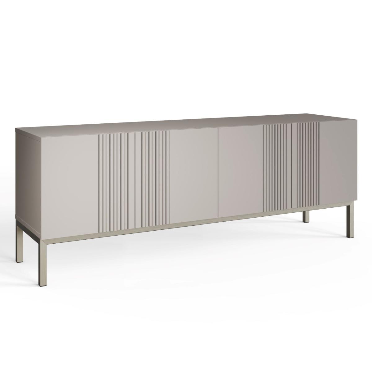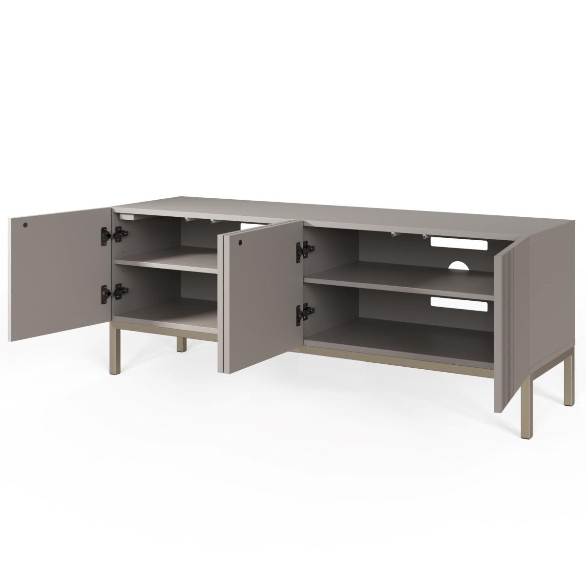 I’m quite taken with this grey smart TV unit for its clean lines and discreet cable-management - it keeps media components out of sight without bulk. The matt finish and subtle fluted detailing add interest while staying neutral, so it fits effortlessly into contemporary, Scandinavian-inspired or even minimalist industrial schemes. For styling, I’d balance the width with a tall potted plant or sculptural lamp at one end and a low stack of coffee-table books or a simple ceramic bowl at the other. Inside the cupboards, use uniform storage boxes or woven baskets to keep controllers, games and DVDs organised and out of view.