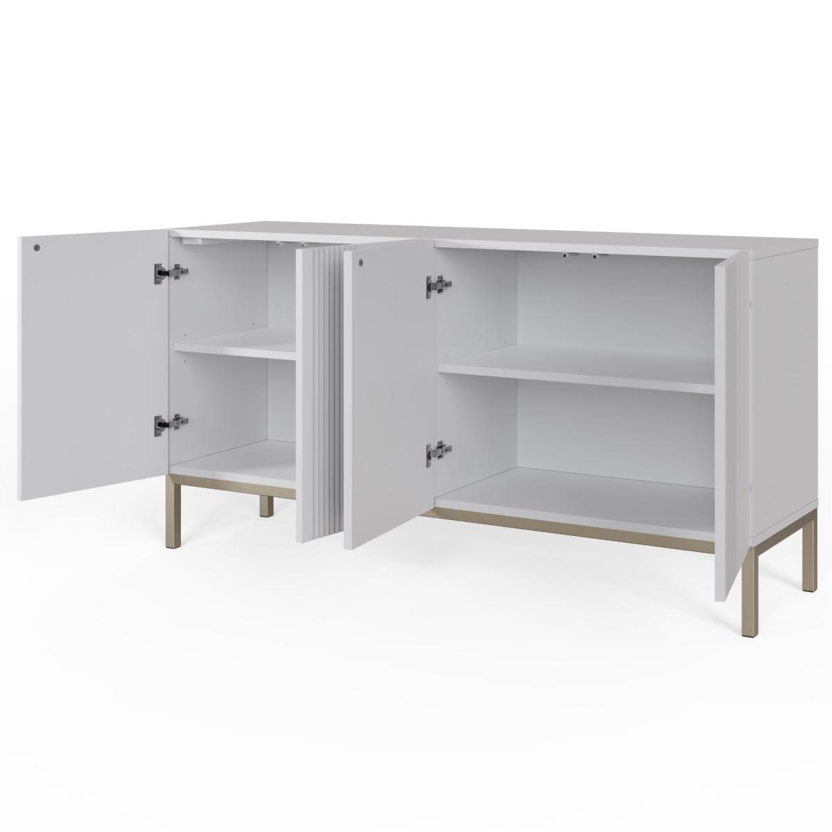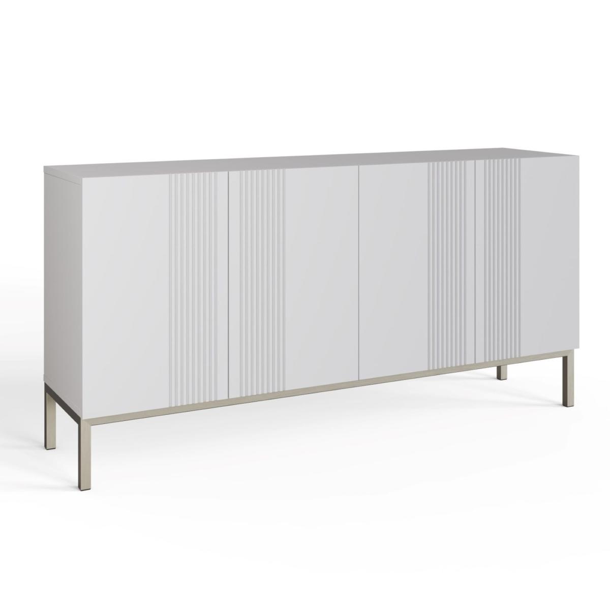 I’d call this the Iona sideboard - its slim metal legs and subtle ribbed doors give it a clean, contemporary edge. I love it for open-plan living or a hallway where you need hidden storage without bulk. It works particularly well in Scandi-inspired or mid-century settings, but the white finish also brings lightness to darker, more industrial schemes. Styling tip: keep the top simple with a couple of ceramic vases, a small stack of art books and a framed print leaning against the wall. Inside, use matching baskets or boxes to corral cables and chargers, so you maintain a clutter-free look.