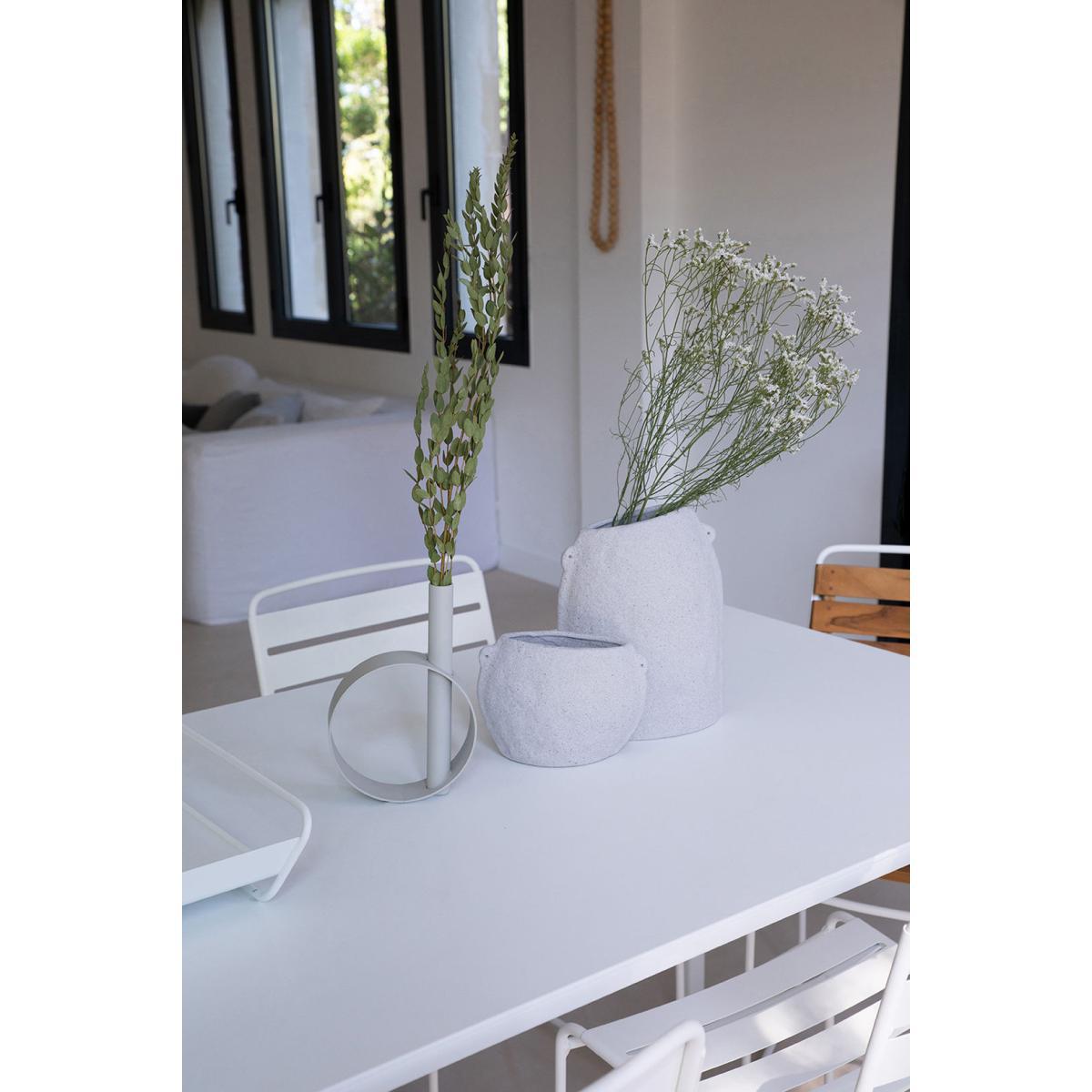 In keeping with its values, Fermob pays tribute to nature with its single-stem vase, named IOS. Pearl of the Cyclades, the island of Ios is known for the purity of its landscapes and the untouched charm of its wildlife. Two qualities that the Fermob studio wanted to showcase in a design with sleek, minimalistic lines. An exceptional setting to enhance the beauty of nature. The IOS single-stem vase provides a breath of fresh air for your interiors. It's composed of a rounded steel structure and a watertight and removable aluminium tube. We love the bold combination of different geometric forms. A poetic union which gives this round, design vase an ethereal look. The whole form is stood on an invisible disc which ensures perfect stability. A subtle balancing act which highlights the light weight and transparency of the piece. Once again, Fermob shows off the range of its industrial expertise with this playful, décor, and on-trend accessory. Designed to hold a single flower stem, the IOS single-stem vase has been developed in a range of unapologetically timeless colourways, allowing this piece to find its place both indoors and outdoors. With its soft lines, the IOS single-stem vase pairs perfectly with the Bellevie table or any of the coffee tables from the Bebop collection. A harmonious alliance which adds soul to any dining or lounge setting.