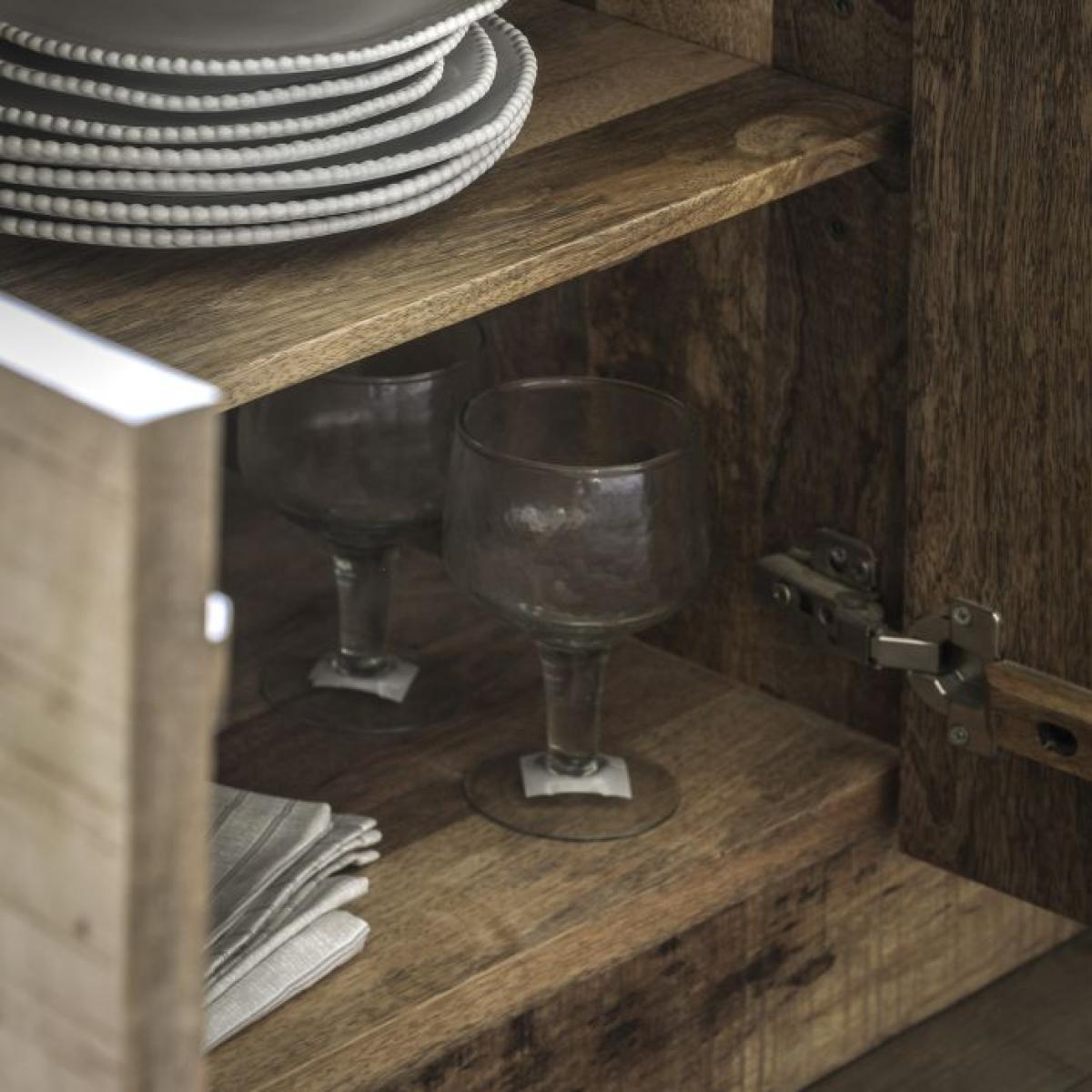 Add rustic charm to your home with this sturdy sideboard. With rough hewn Mango wood in a charming natural finish, this chunky sideboard features 4 doors with 2 cupboards and interior shelves, perfect for storage. Also available in a whitwash finish. Coordinating additional pieces available.