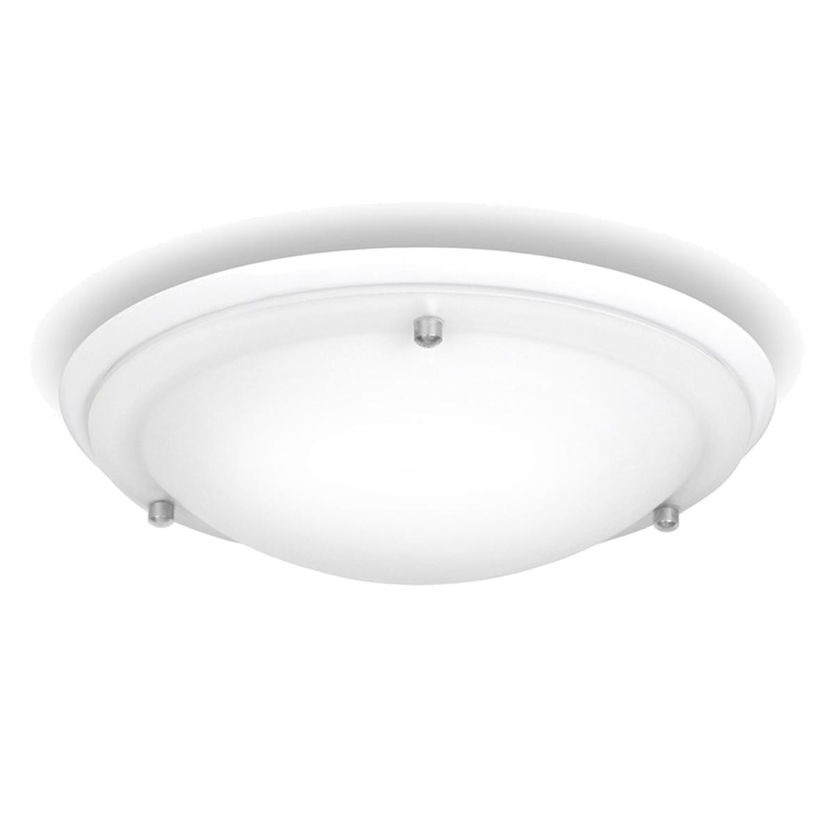 IP44 Round Flush Ceiling Light with Shade and Warm Bulb - White
