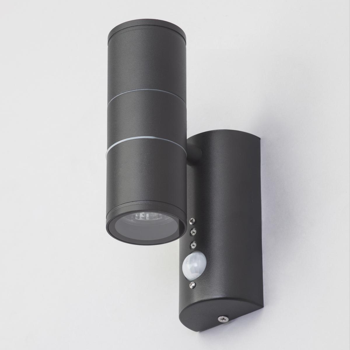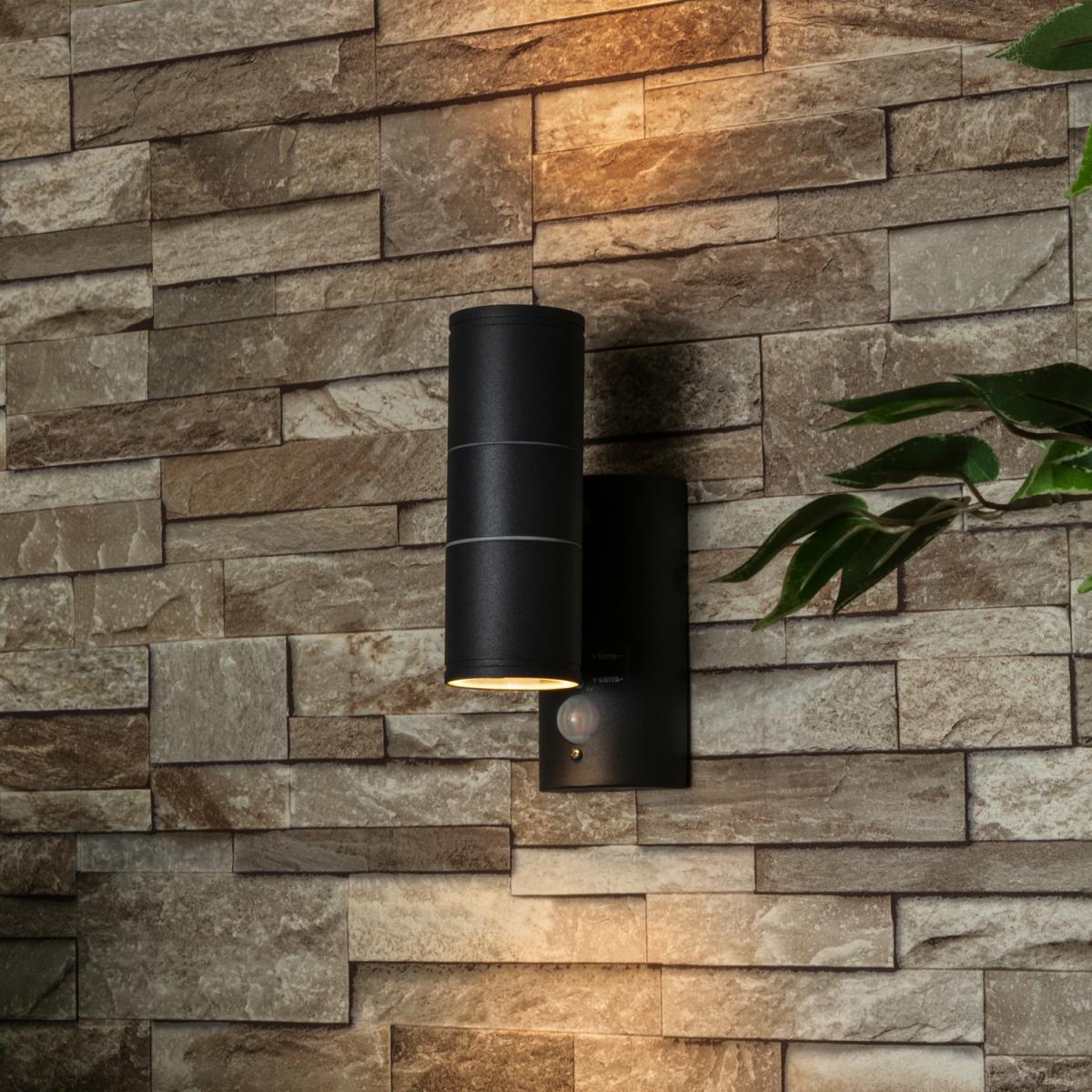 Enhance your outdoor space with the Irela 2 Light Up and Down Outdoor Wall Light with PIR Sensor. This sleek and modern wall light features two lights that cast a beautiful up-and-down glow, creating a warm and inviting atmosphere. The built-in PIR sensor adds convenience and security by automatically turning on the lights when motion is detected. With its durable construction and IP44 rating, the Irela wall light is designed to withstand the elements and all weather conditions. Illuminate your outdoor area with style and functionality and enjoy a welcoming and well-lit outdoor space every time.