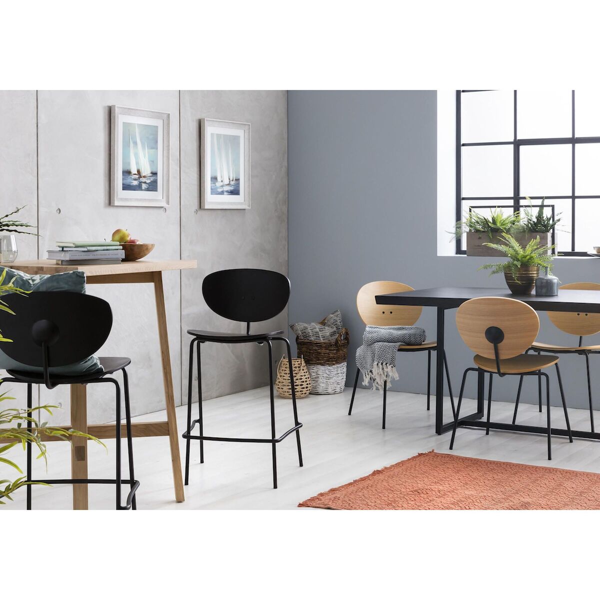 Meet our Iria Black Bar Stool, perfect for modern dining room settings, or kitchens alike. The metal frame and wooden seat complement perfectly for a contemporary finish. Match this classic design with any bar table or kitchen counter, for a futuristic complete look, suitable for all decors and styles. Available in multiple colours and a dining chair alternative.